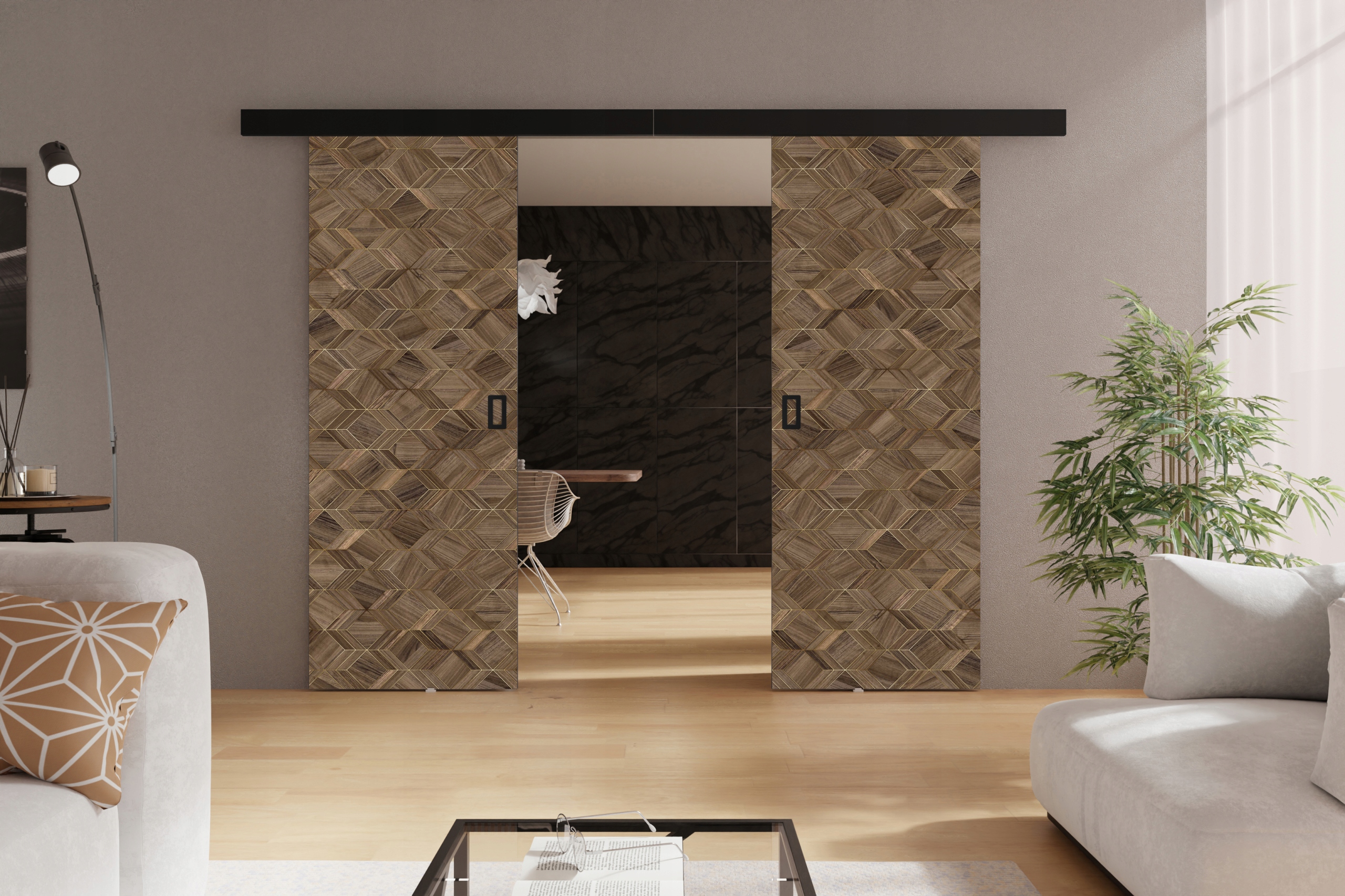 Двери раздвижные настенные WERMO DUO 152 с маскировочной рамкой