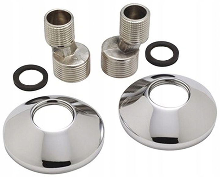 ✅ В комплект входят все необходимые элементы для установки смесителя: два шланга, прокладки и винты.