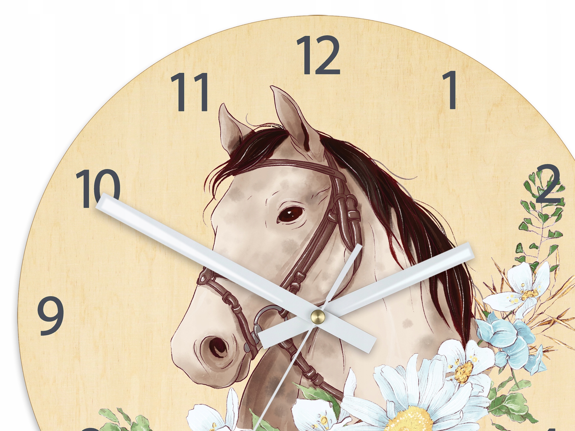 - Диски с часами: Березовая фанера с красивой лошадью печати