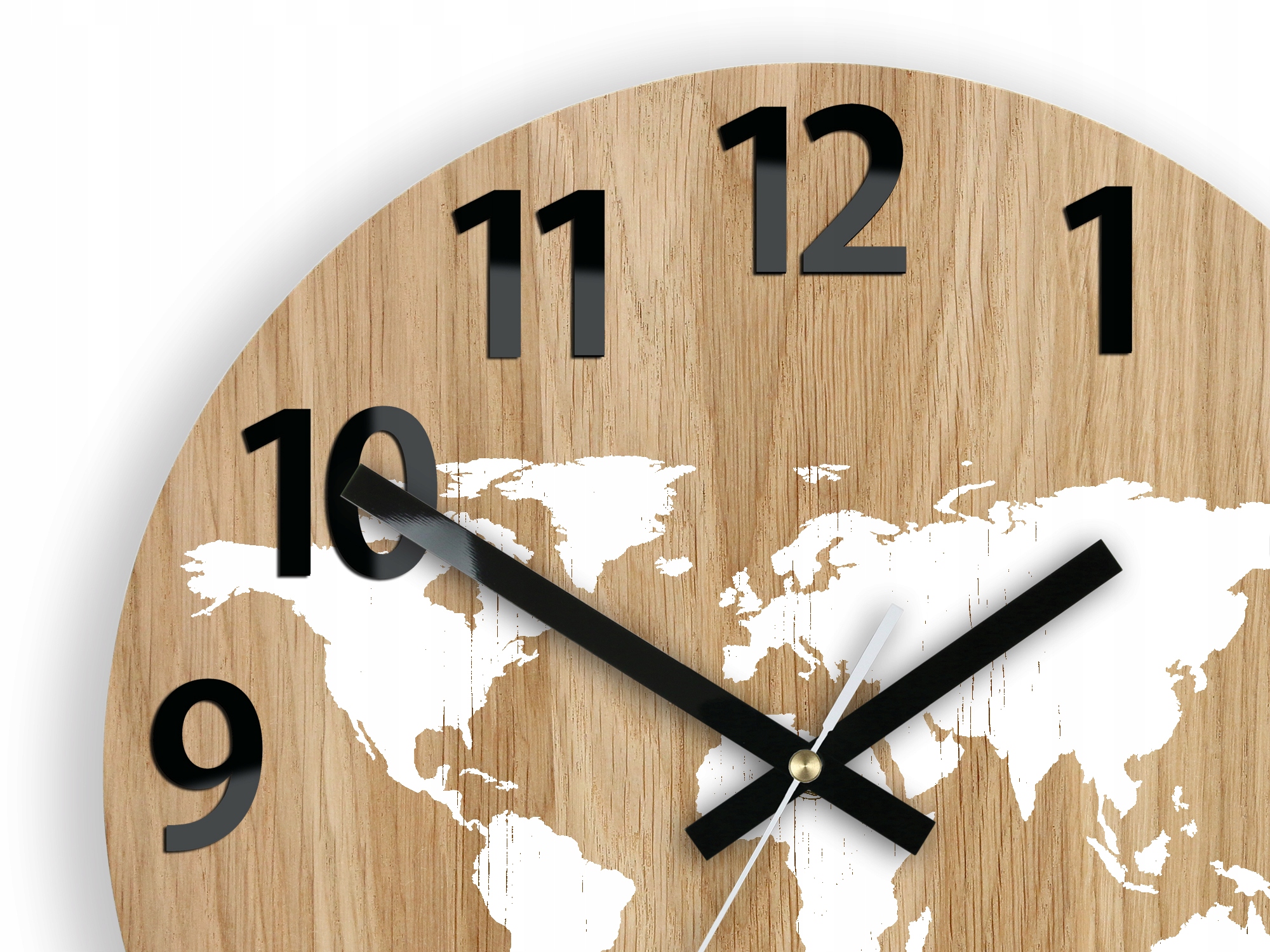 Настінний годинник КАРТА СВІТУ З ЦИФРАМИ - БІЛІ безшумні
