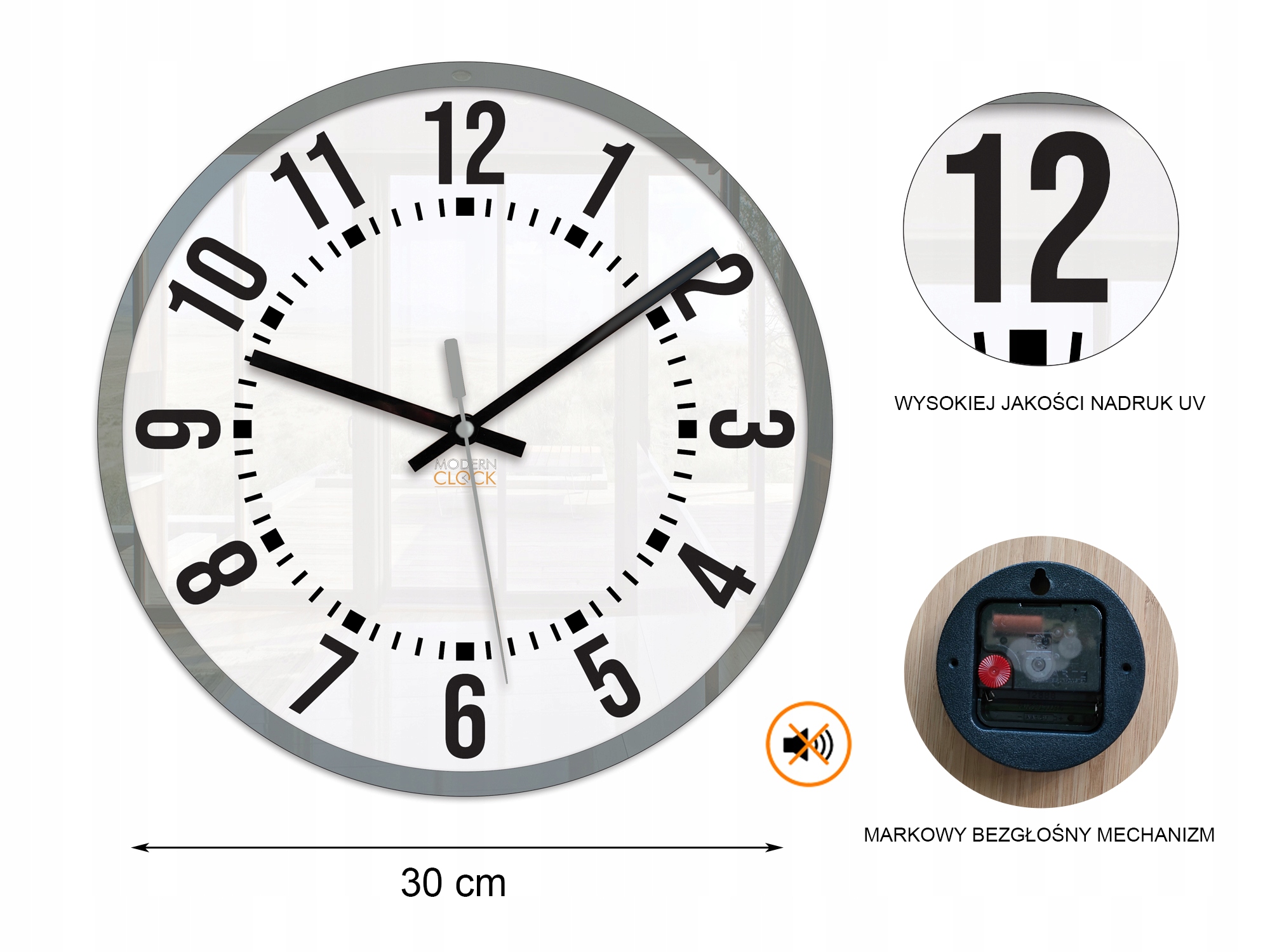 - Диаметр циферблата часов: 30 см