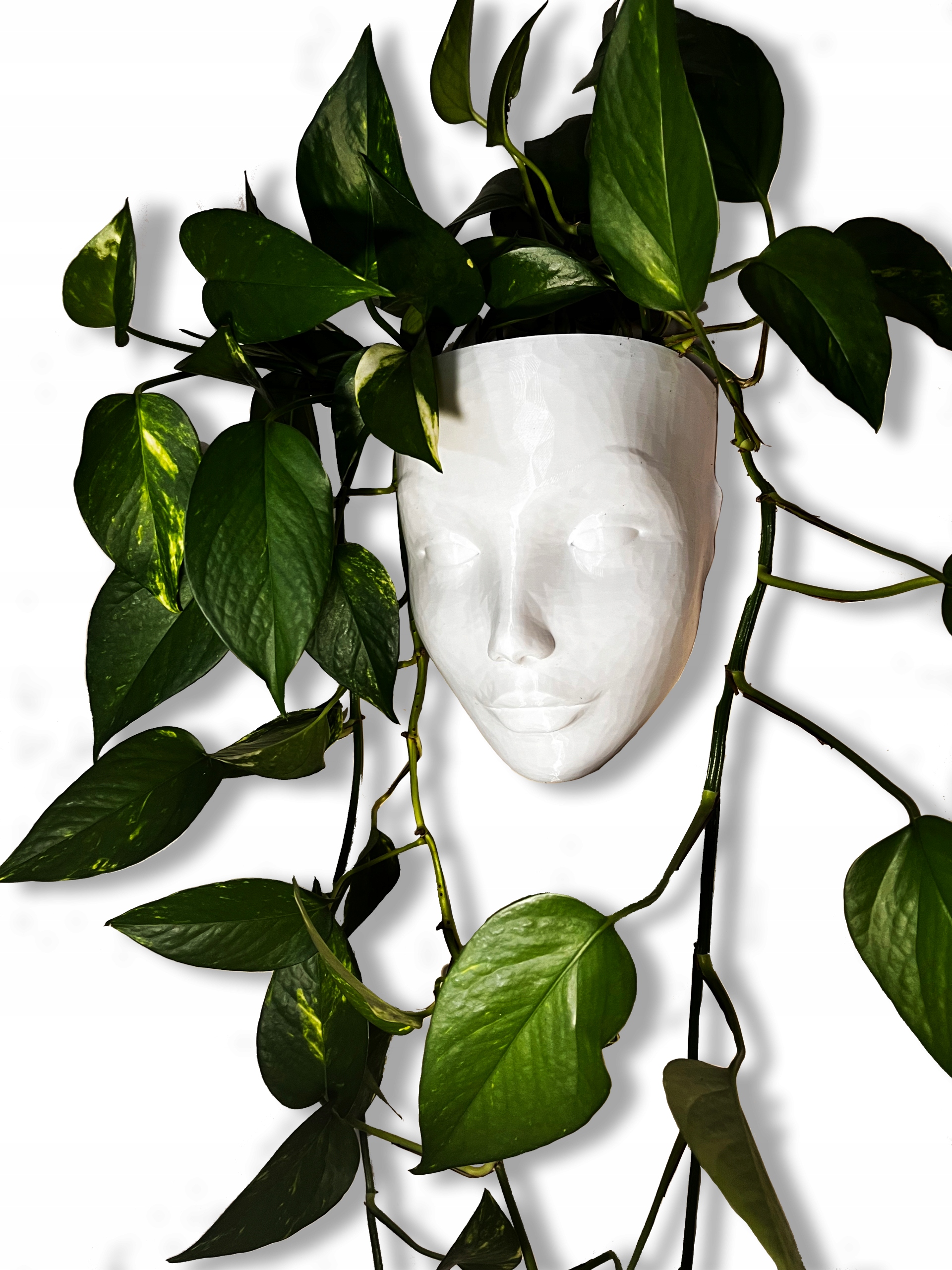 Настінний горщик для квітів - Голова - Обличчя - Білий - L