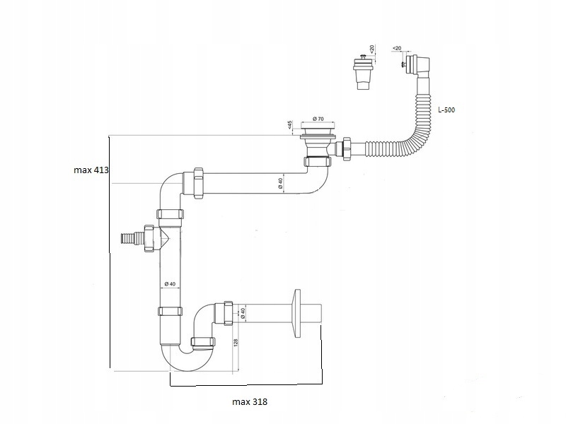- сифон с цельнометаллическим сетчатым фильтром диаметром 70 мм