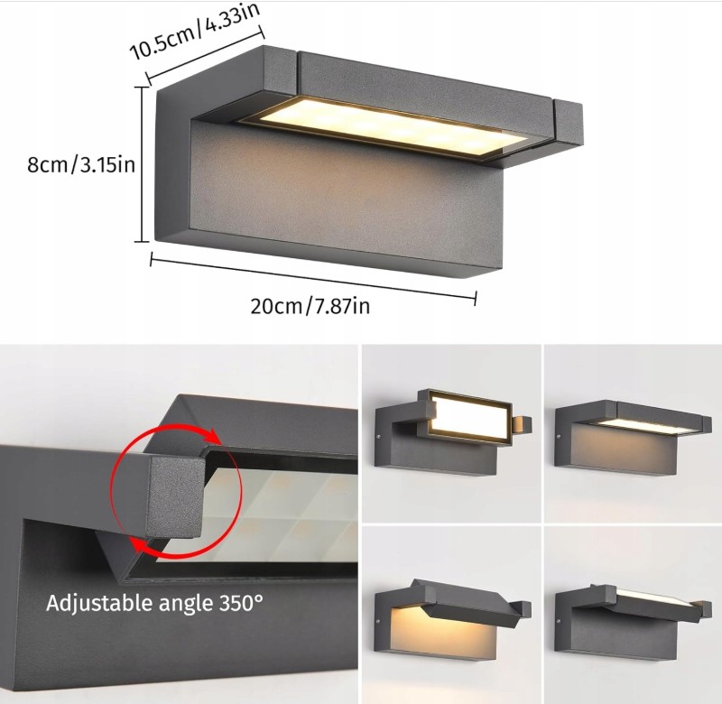 НАСТЕННЫЙ СВЕТИЛЬНИК ДЛЯ НАРУЖНОГО ИНТЕРЬЕРА LED 22W IP65 3000K ТЕМНО-СЕРЫЙ 350°