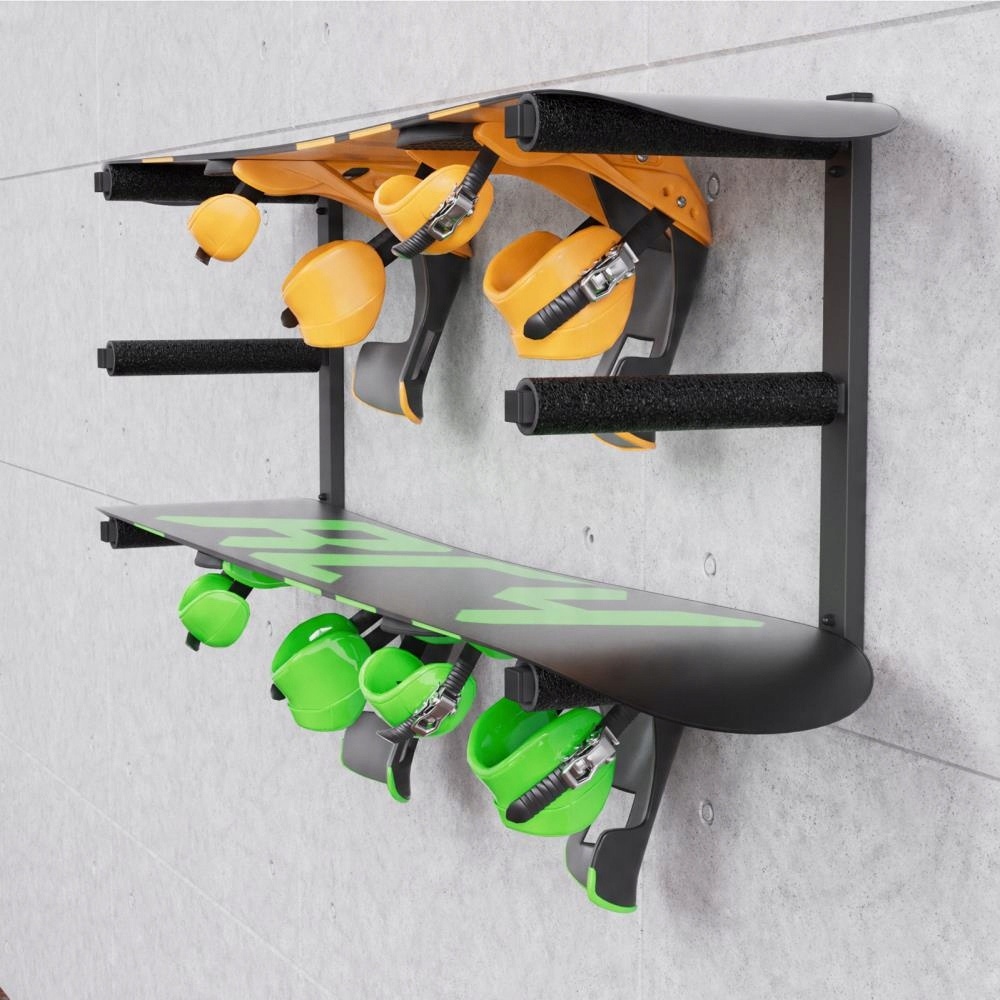 Прочное тройное настенное крепление обеспечивает надежную фиксацию и позволяет безопасно хранить инструменты, лыжи, сноуборды, лестницы, трубы, строительные инструменты и садовый инвентарь.