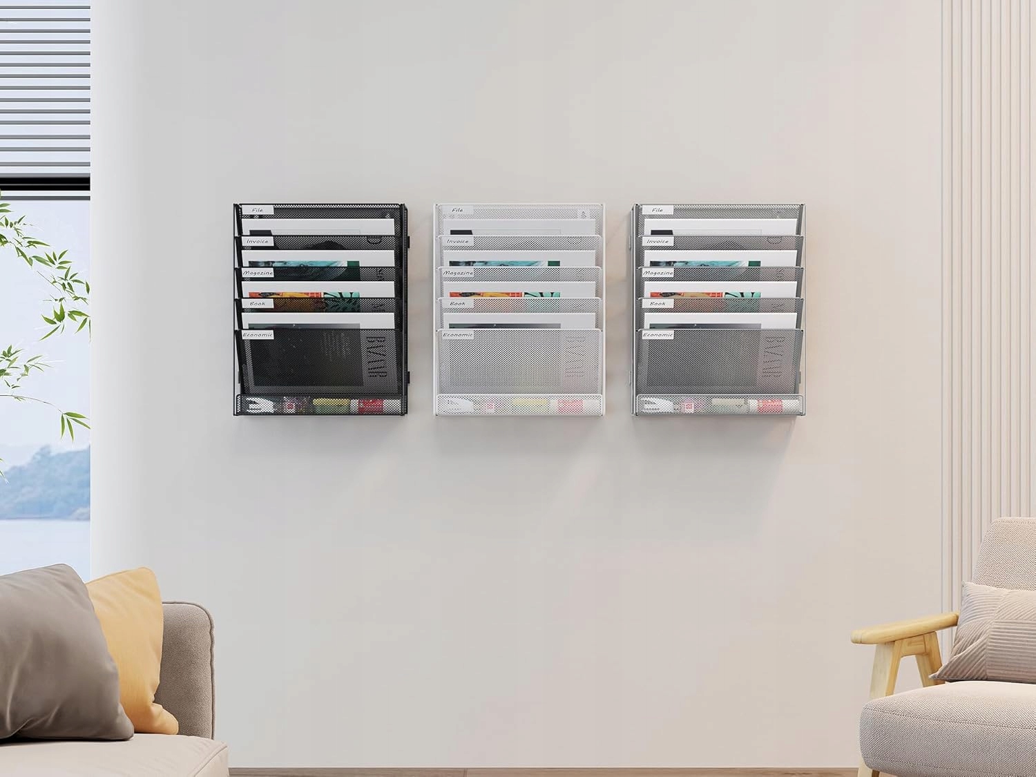Органайзер изготовлен из высококачественной металлической сетки с порошковым покрытием, что делает его устойчивым, устойчивым к повреждениям и прослужит долгие годы. Это надежное решение как для офиса, так и для дома.