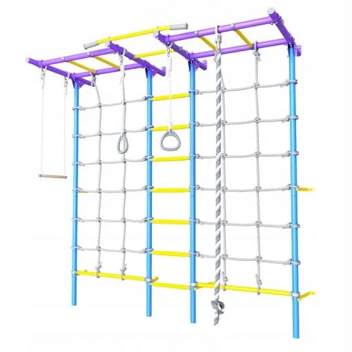 Gimper Ladkek Next-5 Dual-это настенная лестница для следующих 5 упражнений, которая была дополнительно оснащена горизонтальной лестницей. Сетка скалолазания развивается в детской координации движений, баланса, а также обучает мышцы, ответственные за надлежащую осанку тела. Металлическая горизонтальная лестница - это реальная возможность почувствовать в джунглях в вашей комнате. Набор также имеет дополнительные гимнастические аксессуары: колеса, трапециевидную и скалоладу.