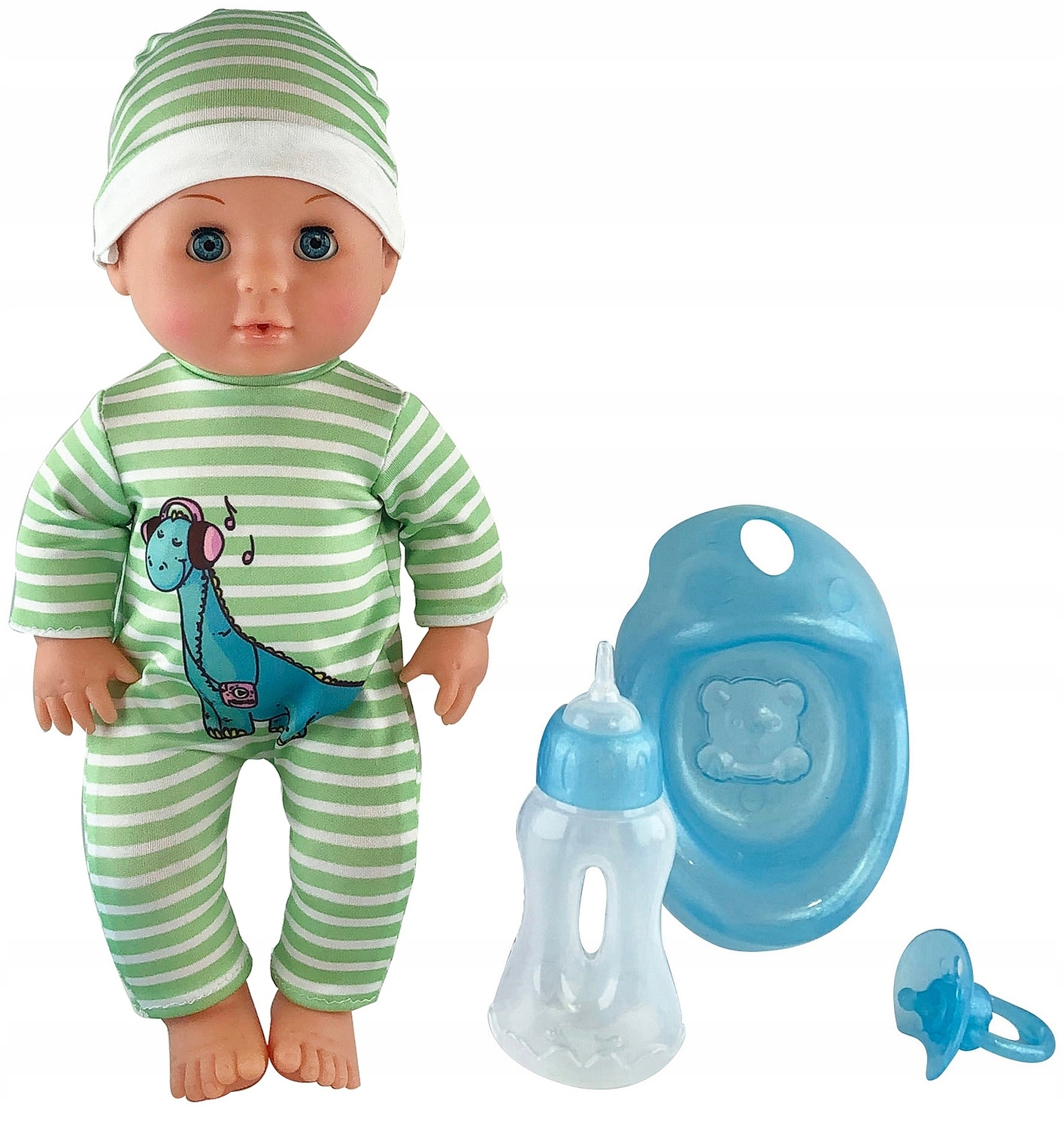 ПИЩАЮЩИЙСЯ РЕБЕНОК 30см С ЗЕЛЕНЫМИ АКСЕССУАРАМИ