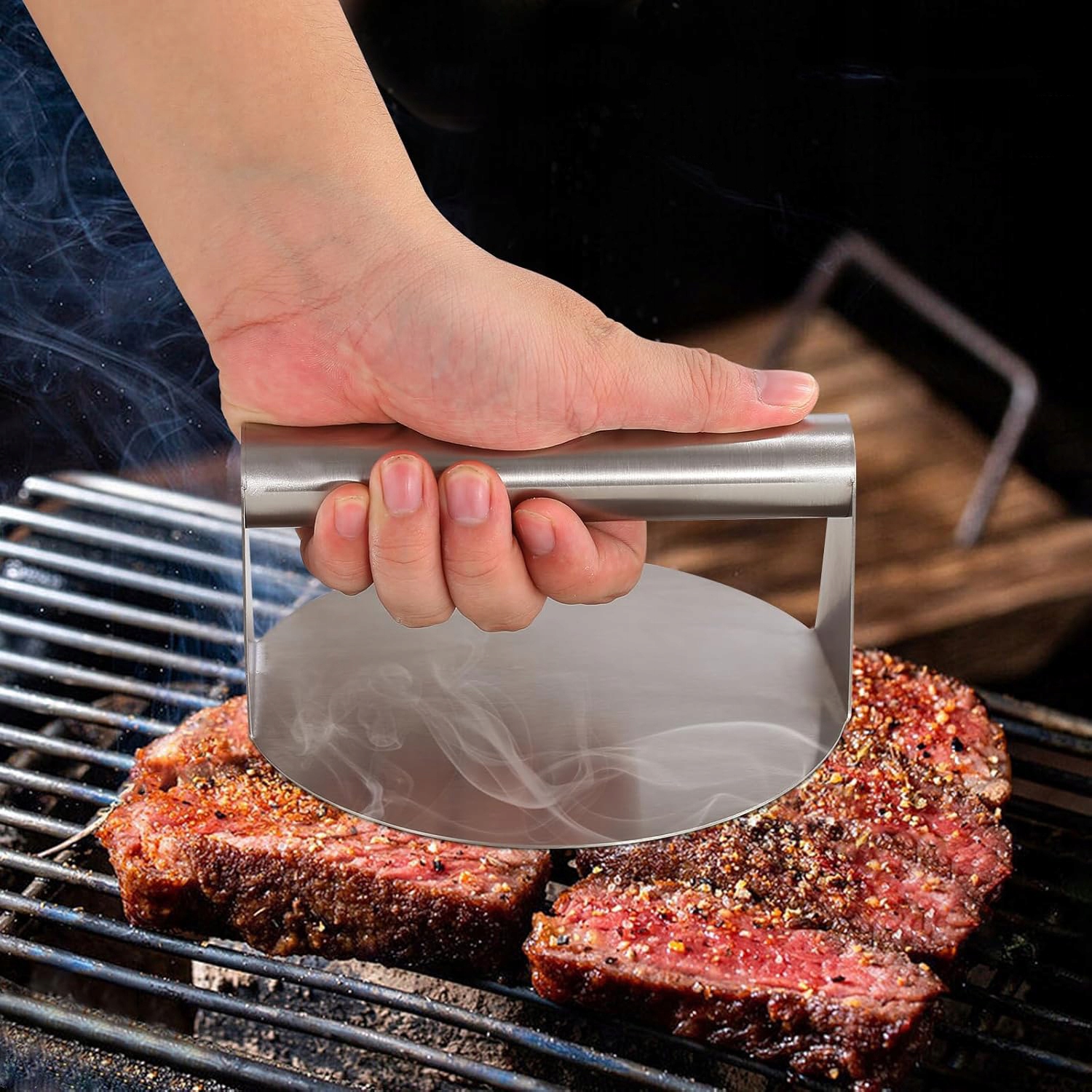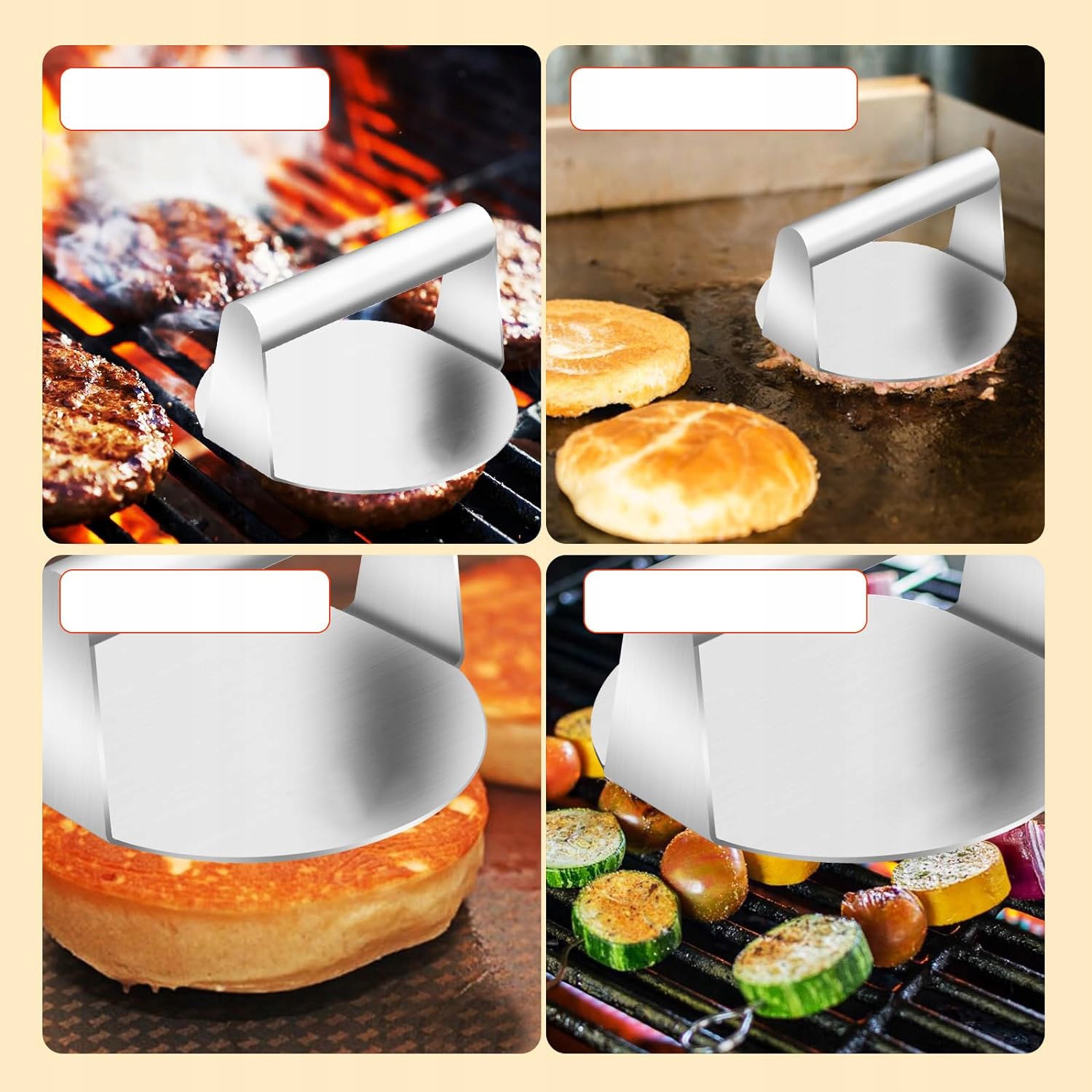 🍔 Универсальный кухонный компаньон: Этот универсальный кухонный пресс подходит для использования на гриле, кастрюле и других, благодаря которого он является незаменимым инструментом как для кипения снаружи, так и внутри. Независимо от того, являетесь ли вы опытным шеф -поваром или энтузиастом кулинарии, наша Burgers Press позволяет вам создавать вкусные гамбургеры и не только.