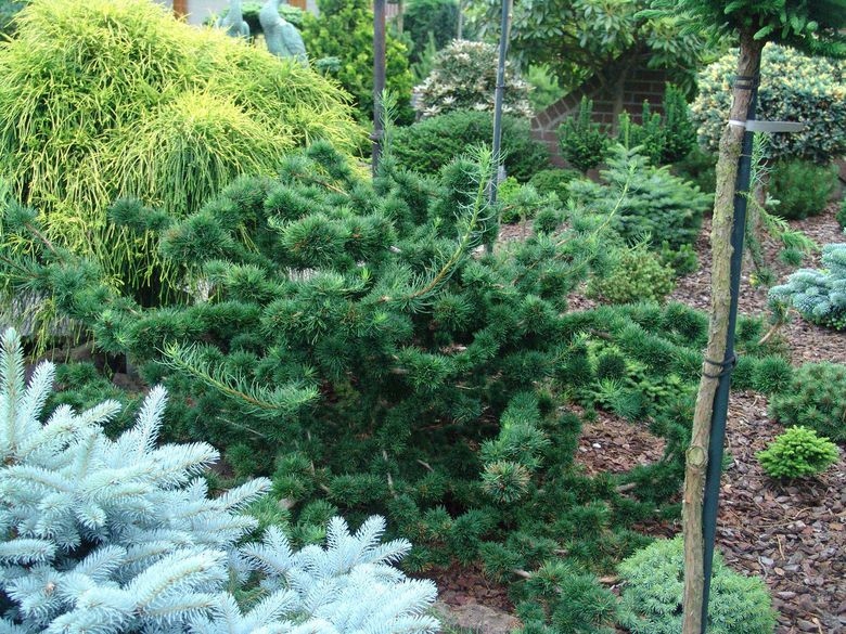 Хвоя светло-зеленая до 3 см длиной, в плотных куртинках, неравномерно расположена на побегах.