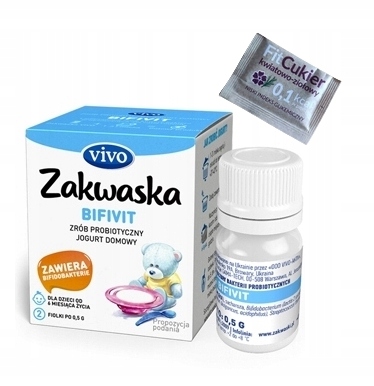Закваски для BIFIVIT VIVO – живые бактериальные культуры для приготовления натурального пробиотического йогурта в домашних условиях. Домашний йогурт отличается высочайшей свежестью и отменным вкусом, а главное, высокоактивными бактериальными культурами. Домашний йогурт, приготовленный по инструкции, не содержит никаких ненужных добавок, таких как сухое молоко, сахар, загустители, красители и усилители вкуса. Готовя его дома, мы можем быть уверены, что продукт натуральный. Для его приготовления вам понадобится лишь стальная кастрюля или банка. Лучше всего молоко жирностью 3,2% или жирностью.