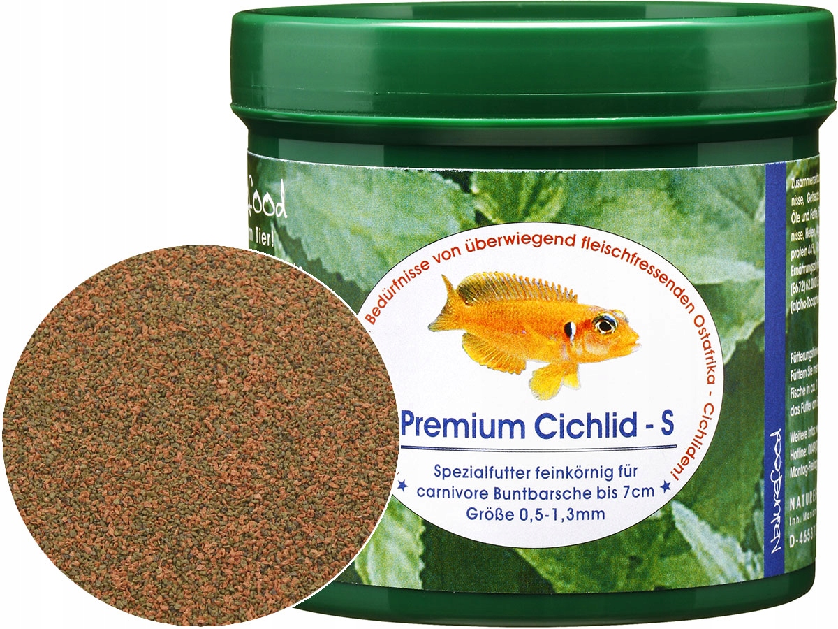 Корм, специально приготовленный для восточноафриканских цихлид, доступен в гранулах 0,5-1,3 мм, 1,2-2,2 мм и 3-4 мм, по 2-3 навески. Рыбы из озер Танганьика и Малави требовательны к цихлидам и нуждаются в легкоусвояемой пище с не очень высоким содержанием белка. Легкоусвояемый экструдат Naturefood Premium Cichlid содержит оптимально подобранные ингредиенты животного и растительного происхождения. L-грануляция предназначена специально для крупных цихлид (питающихся другими рыбами). Он оседает с разной скоростью, чтобы рыбы из всех водоемов могли питаться одновременно.