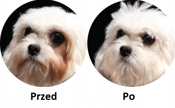 - помогает удалить раздражения и слезные пятна, обесцвечивающие шерсть вокруг глаз у белых собак.