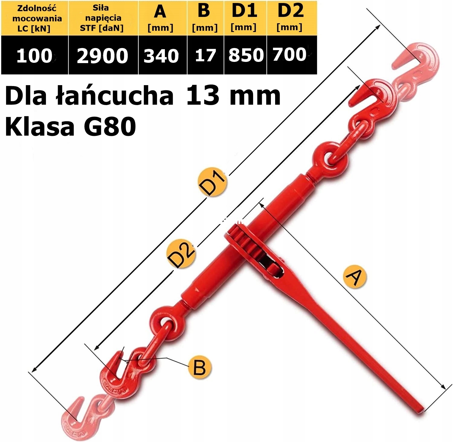 НАТЯГУВАЧ ЛАНЦЮГА + ПОТЯГУВАННЯ 106kN 10.6T L=3m Ø13mm СХВАЛЕННЯ CE