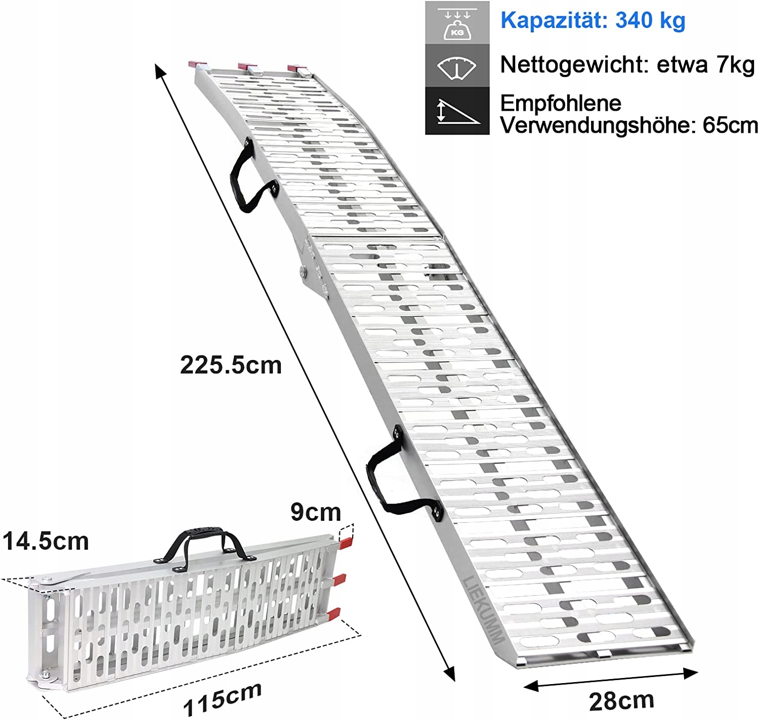 НАВАНТАЖУВАЛЬНА РАМПА 223 СМ СКЛАДНА ДО 340 КГ LIEKUMM