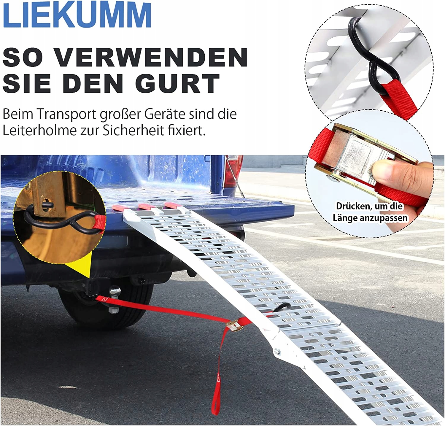 В нижней части погрузочной рампы имеются три резиновые крышки, которые предотвращают скольжение и делают процесс погрузки более безопасным и стабильным. Алюминиевый сплав обладает высокой прочностью и высокой несущей способностью. Небольшой изгиб при хранении является нормальным, но это не влияет на использование.