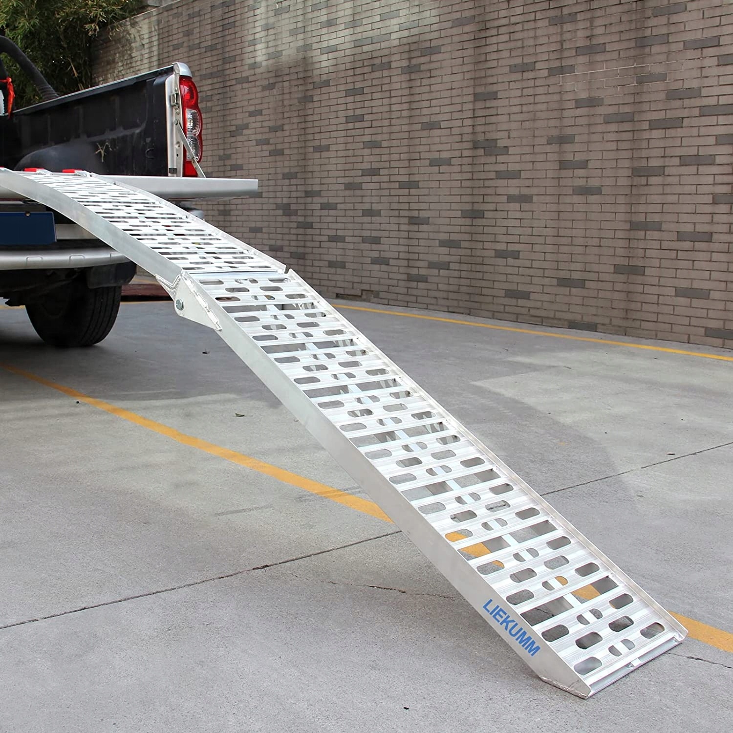 Погрузочная рампа изготовлена из легкого и прочного алюминия, весит 8 кг. Максимальная грузоподъемность до 340 кг. Соединения и поперечины сварены, поэтому пандус можно складывать и раскладывать бесчисленное количество раз, не вызывая поломок.