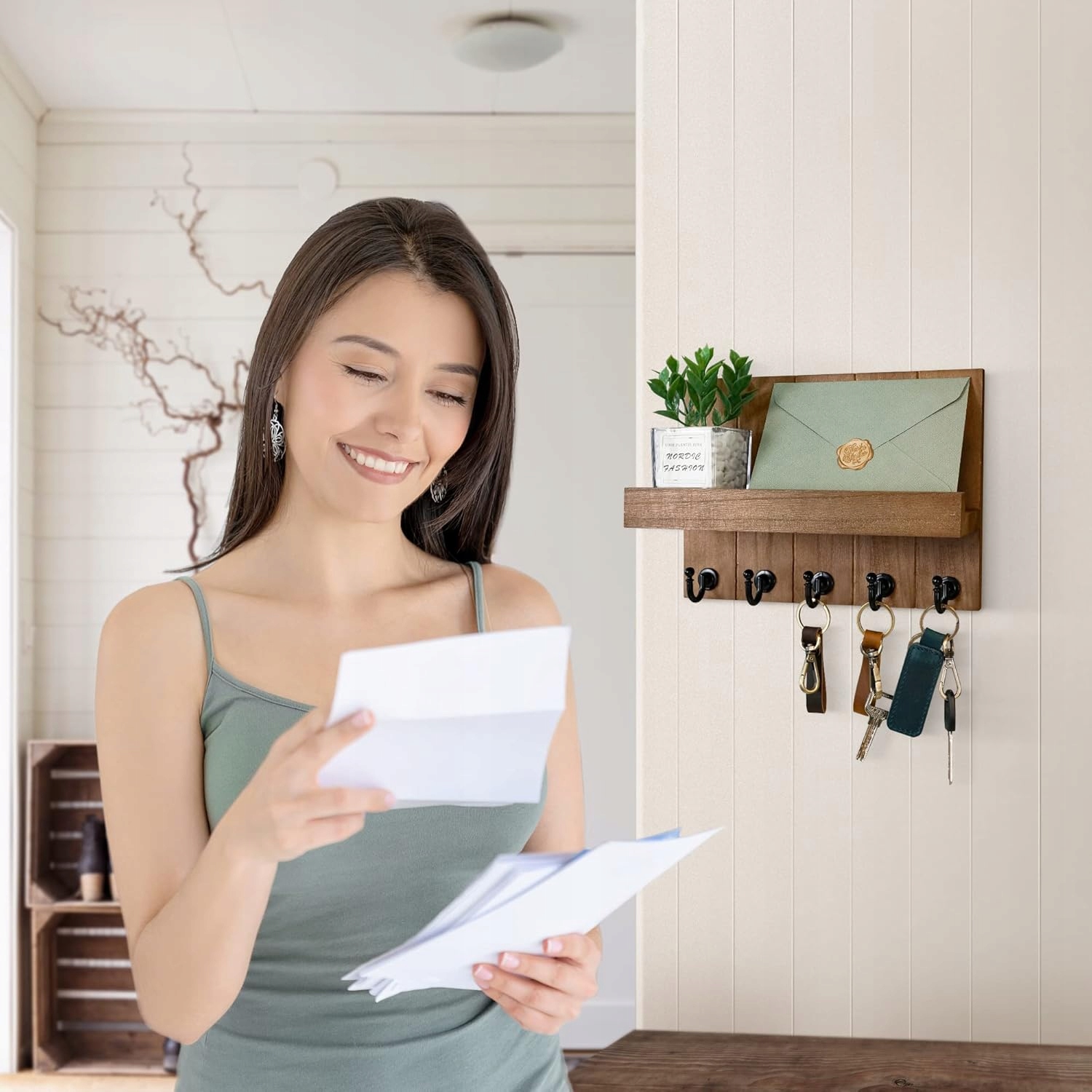 Деревянная вешалка с ключом с полкой, вешалка с 5 крючками для ключей, декоративная деревянная настенная полка, входная дверь, коридор, спальня, коричневая