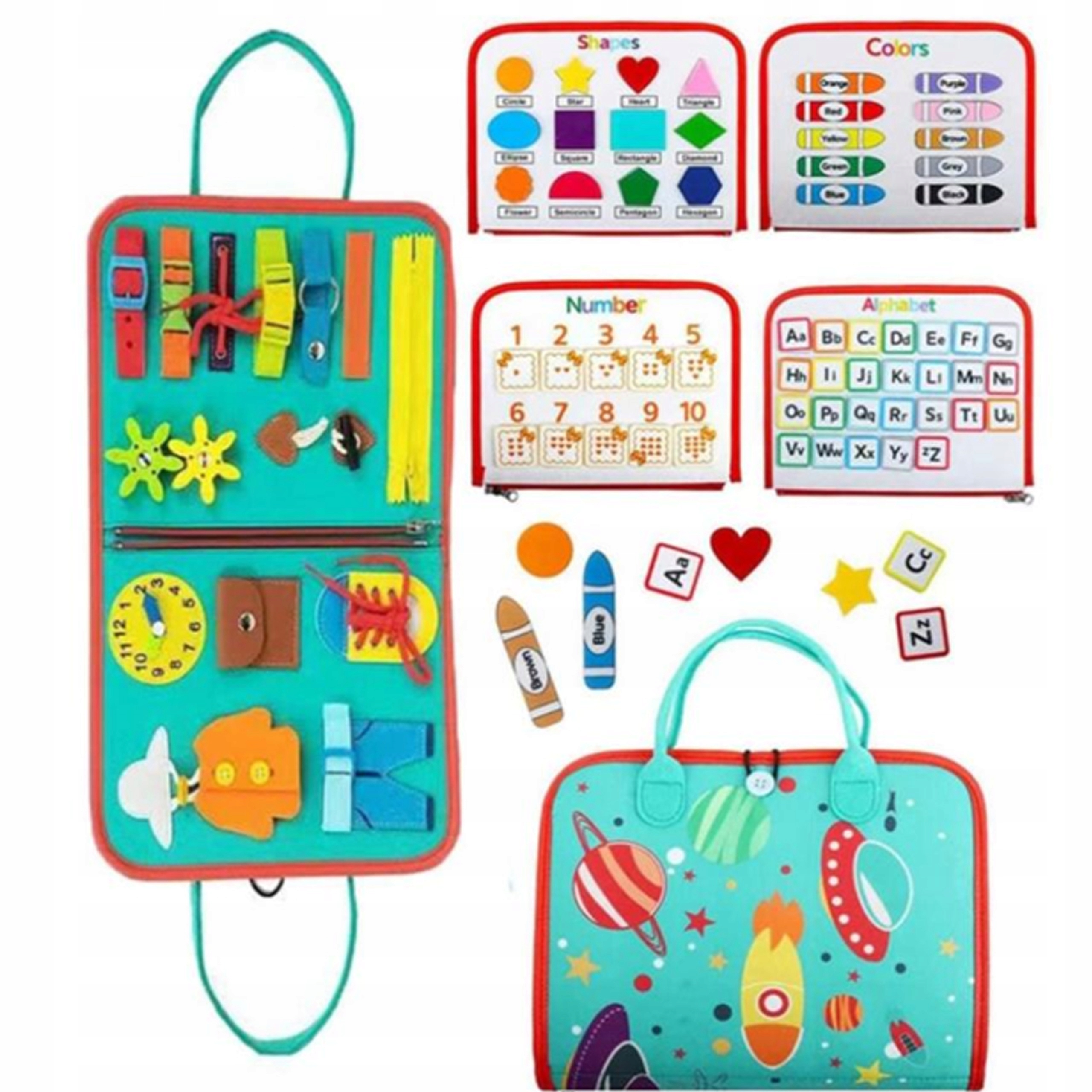 - - Съемные слои Монтессори. Центральные слои доски легко отстегиваются благодаря застежке-молнии, что позволяет играть с каждым из них по отдельности.