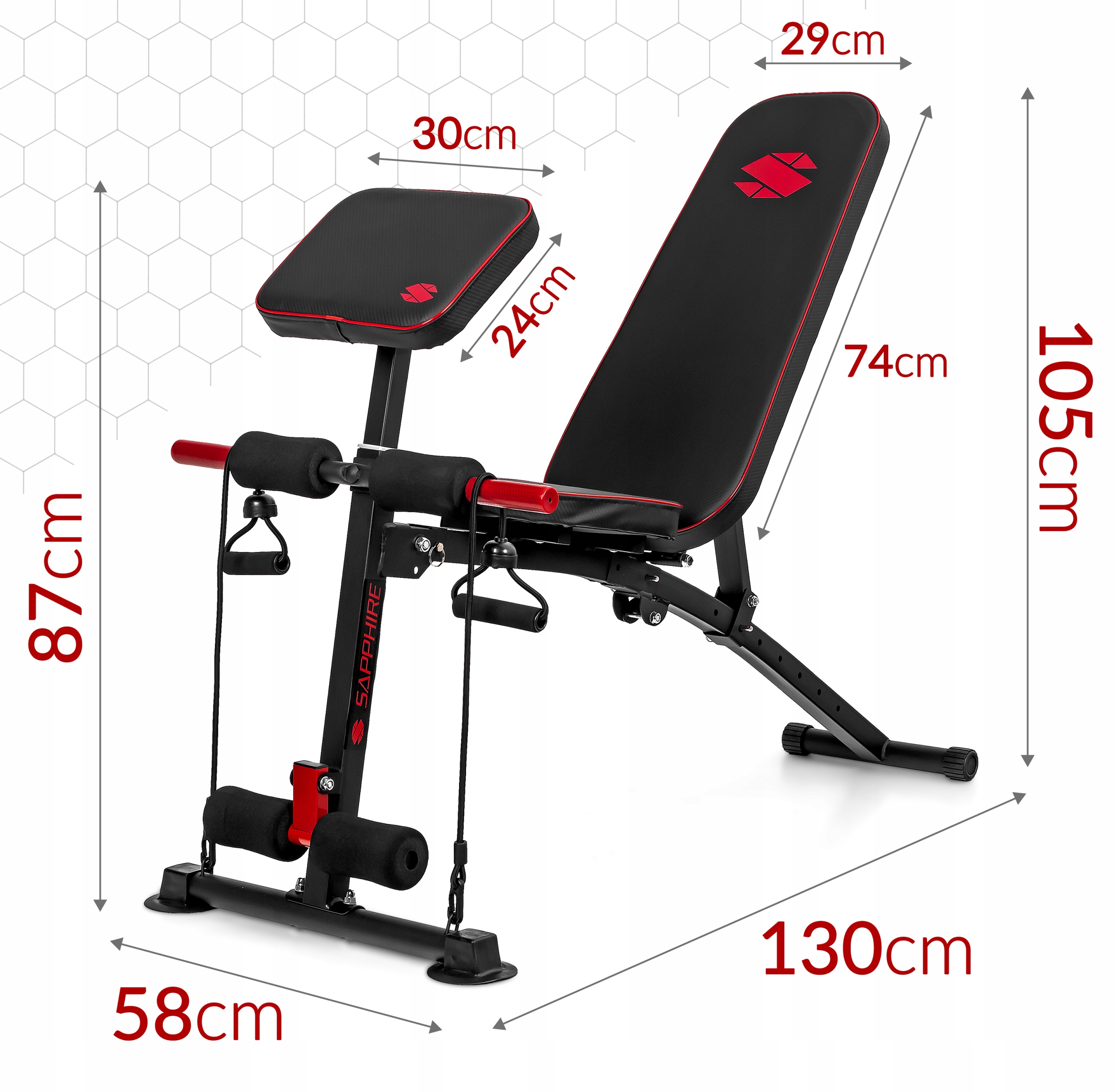 - Стабильная конструкция скамейки и чрезвычайно осторожная отделка обеспечить дополнительную безопасность упражнений