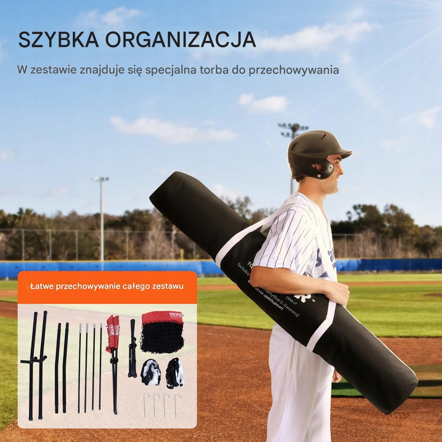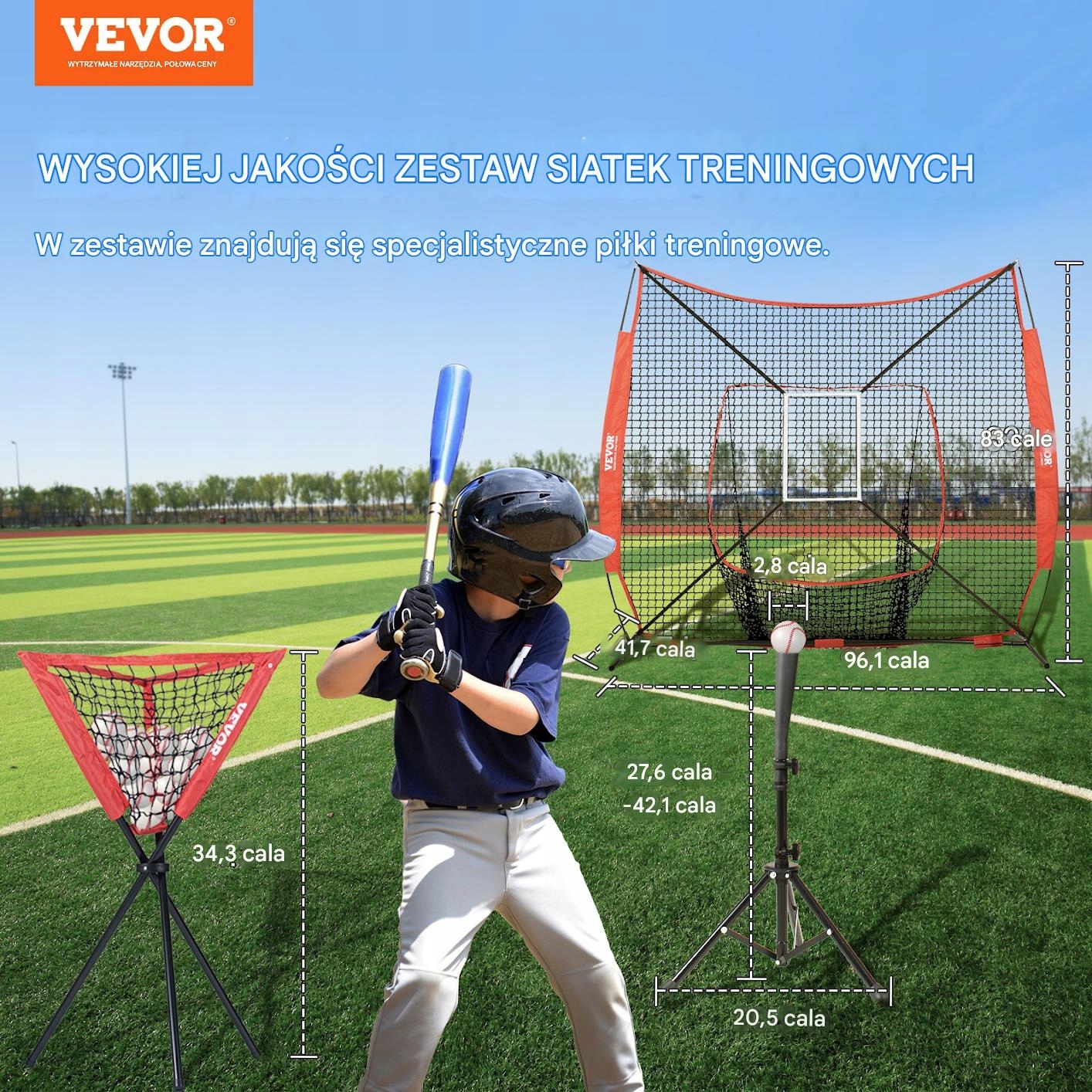 Тренировочная сеть с размерами 2,1 м х 2,4 м, является идеальным решением для каждого поклонника бейсбола и софтбола. Сплошная, долговечная конструкция и Сильная полиэфирная сетка гарантирует надежность и безопасность во время интенсивной подготовки. Набор включает в себя много аксессуаров , включая подставку для шарика и транспортную сумку, что делает его полным инструментом обучения для игроков на каждом уровне продвижения.