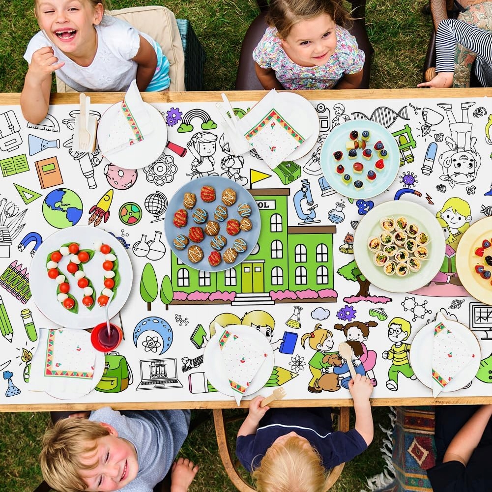 Большая бумажная скатерть со школьным мотивом – идеальное пространство для рисования, раскрашивания и развития воображения. Идеально подходит для уроков рисования, дней рождения, семейных встреч или школьных мастер-классов — он доставит детям много радости и творческого веселья вместе! 👧🧒✏️