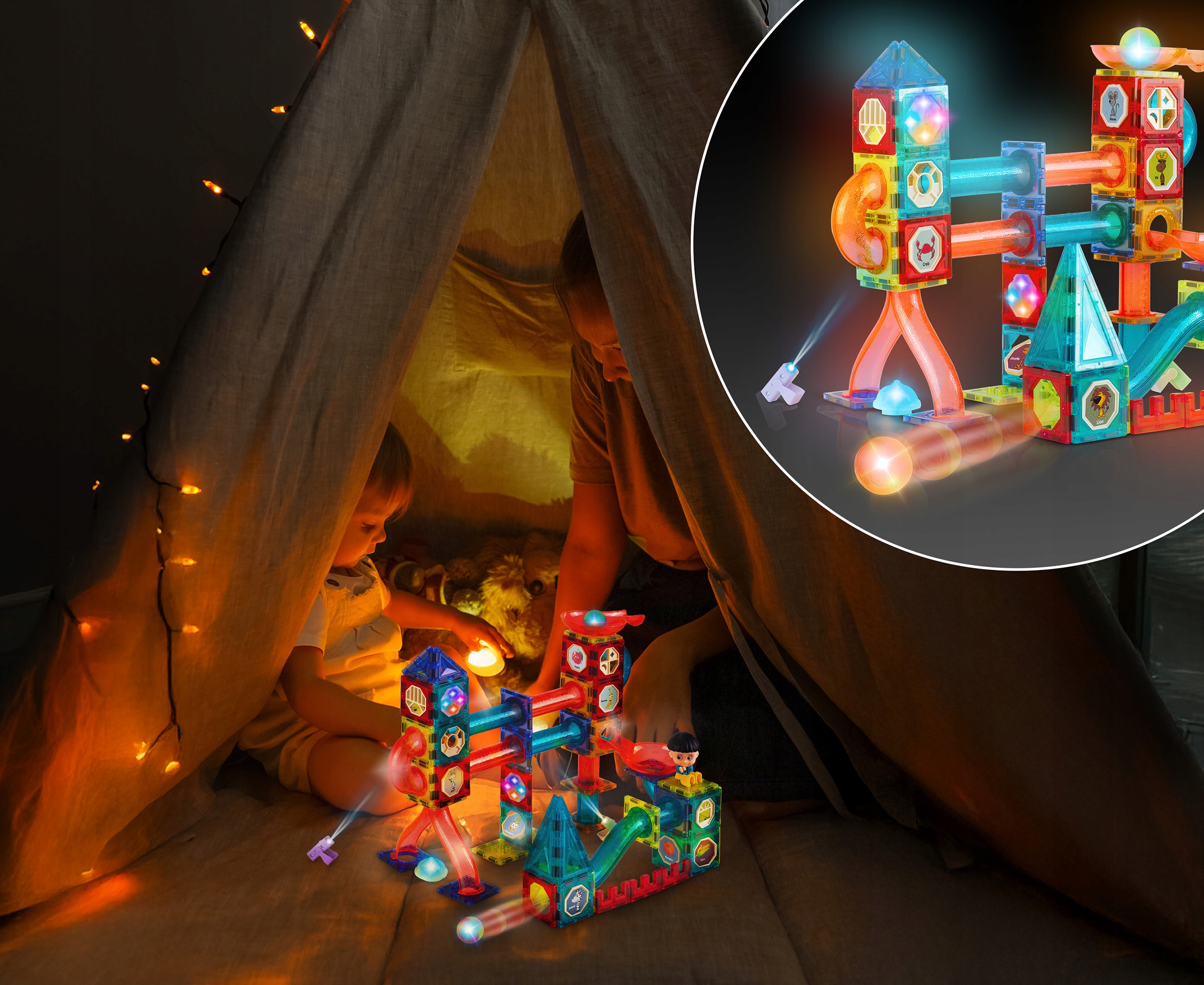 ОБРАЗОВАТЕЛЬНЫЕ КОНСТРУКЦИИ МАГНИТНЫЕ БЛОКИ, светящиеся, 150 шт ДЕТСКИЕ, 3D