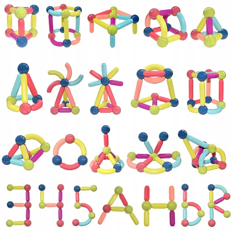 Блоки легко соединять элементы любым способом и под разными углами. По бокам каждого блока встроены сильные магниты, которые с большой силой соединяют последующие блоки, создавая фигурки, которые ребенок может представить. Блоки можно складывать плоско, создавая буквы, змеи и т. д. Дети также могут стимулировать свое пространственное воображение, создавая трехмерные конструкции.