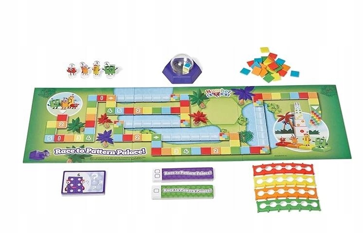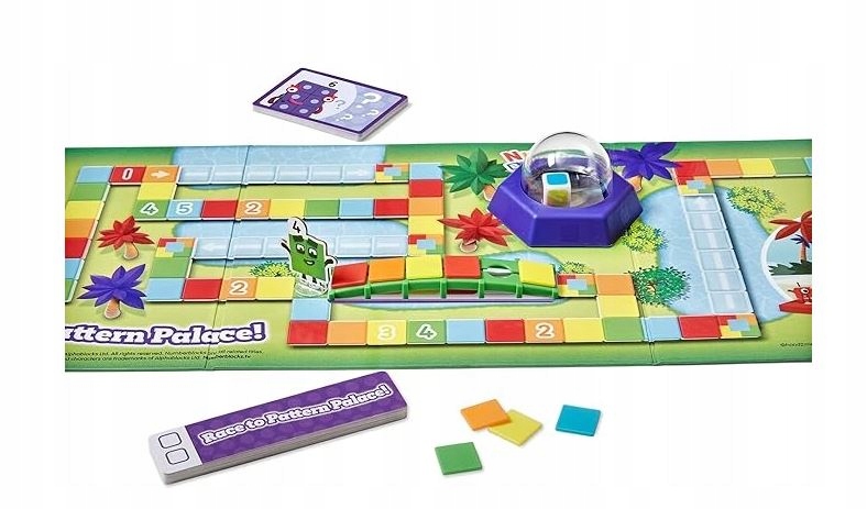 Гонка во Дворец Образцов вдохновлена одним из самых популярных эпизодов сериала. Играя в эту увлекательную математическую настольную игру, дети развивают навыки счета, распознавания образов и создания узоров, а также навыки межличностного общения. Цель игры – доставить фигурку во дворец узоров, решая различные математические головоломки. В набор входят карточки с расположенными узорами, которые разделены по уровням сложности. Игроки мчатся по доске, решая задачи, связанные с воспроизведением красочных последовательностей. Каждый правильно размещенный узор позволяет вам приблизиться к дворцу.