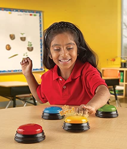 Вовлекайте визуальные, аудиторы и кинкэстетическое обучение с этими огнями и звуками зуммеров. Звуки имитируют реальные объекты-сирена, игровая зуммер, лазер и "Заряд!" Эти зуммеры - отличный способ повысить ответы студентов во время любой классовой деятельности или игры. Они просты в использовании - нажмите, чтобы активировать свет и звук. Каждый зуммер имеет диаметр 9 см и требует 2 батареи AAA, не включенные. (Примечание: зуммеры не являются программируемыми и не совместимы с Alexa.)