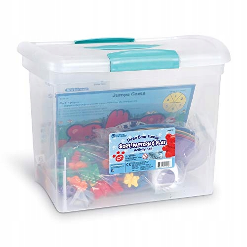 В этот набор входят 96 пластиковых жетонов медведей шести ярких цветов (красный, желтый, фиолетовый, зеленый, синий и оранжевый) и трех размеров (маленький, средний и большой). Привлекательный набор для раннего изучения математики включает в себя 96 жетонов медведей, 6 чаш для сортировки, цветной кубик, числовой кубик, 16 карточек с узорами и последовательностями и вращатель медведей. Все детали упакованы в удобную коробку для хранения