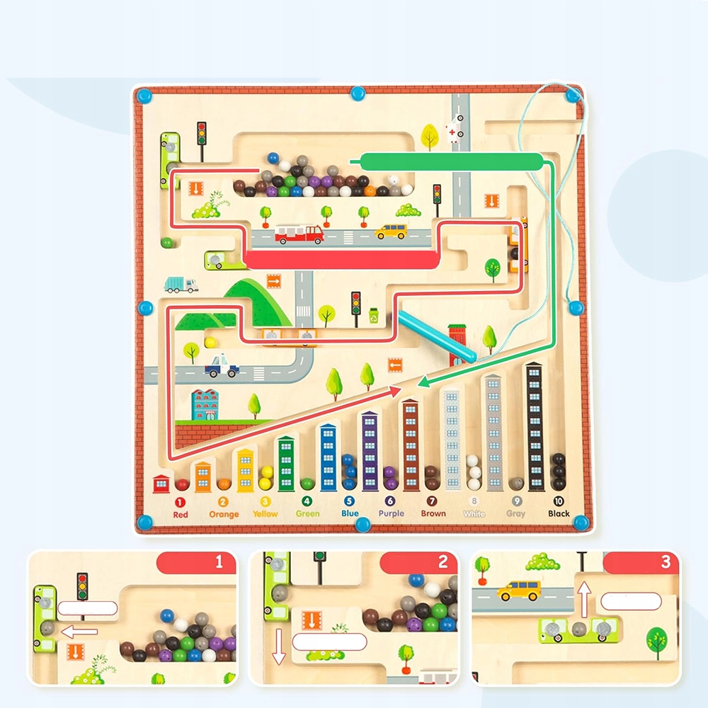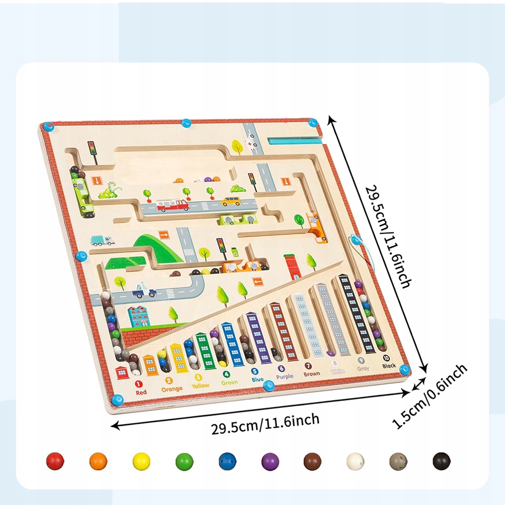 - 🌟 【Безопасность】: Изготовлен из высококачественного дерева и краски на водной основе, прочный и долговечный. Края гладкие, чтобы не поцарапать руку. Прозрачный закрывающий диск предотвращает риск проглатывания. Магнетизм магнитной ручки был изменен для обеспечения точного захвата бусин. Размеры: 29,5 х 29,5 см.