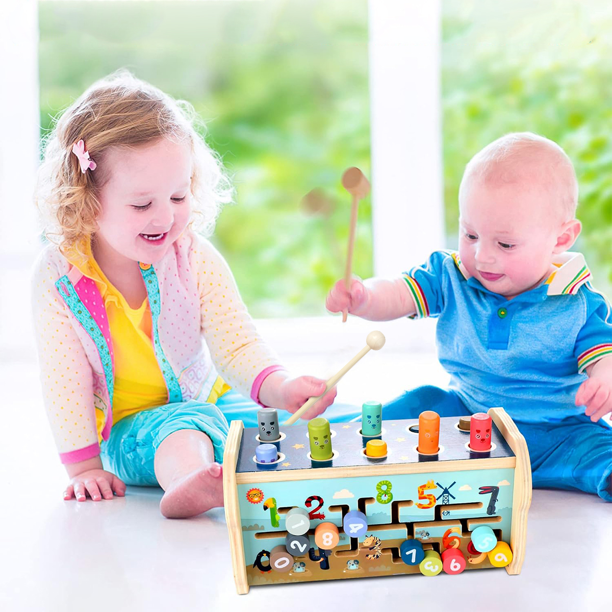 ➡️Простая, но полная деревянная игрушка в стиле Монтессори для малышей от 12 месяцев! Игра молотком развивает зрительно-моторную координацию, мелкую моторику и силу рук. Ксилофон с 8 нотами стимулирует распознавание звуков и музыкальное любопытство. Цифровые головоломки развивают навыки счета и стимулируют когнитивное развитие, поддерживая целостное развитие посредством радостной игры.