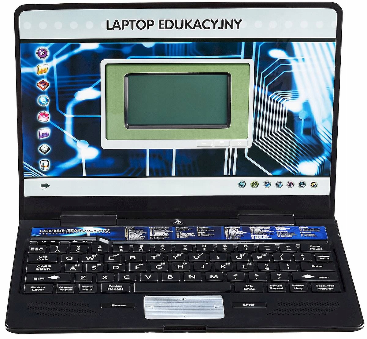 Реалистичная QWERTY-клавиатура содержит все буквы польского алфавита, включая диакритические знаки - ą, ć, ś, ę и т. д. На безопасном ЖК-экране в каждой программе отображается веселая анимация. На ноутбуке также есть регуляторы громкости и яркости экрана.
