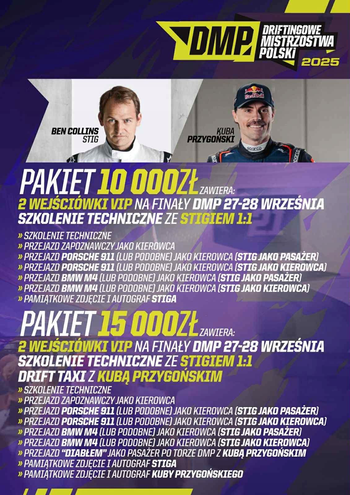 VIP-билет для финала чемпионов польских дрифтов (DMP) 27-28 сентября, техническое обучение с Stig 1: 1 + Drift Taxi с Kuba przygoński h2>