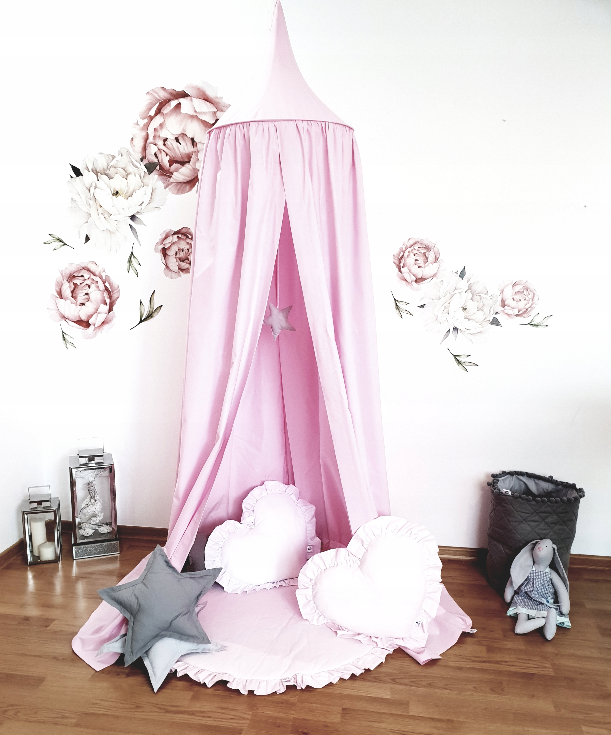 Балдахин – чрезвычайно эффектное украшение детской комнаты, места для игр и отдыха. Подвешенный над детской кроваткой, он приглушит шум и защитит от лишнего света, а в дальнейшем послужит зоной игры и отдыха в комнате дошкольника. Идеально подходит для небольшой комнаты, поскольку не занимает много места. Внутри верха можно прикрепить украшения и декоративные светильники.