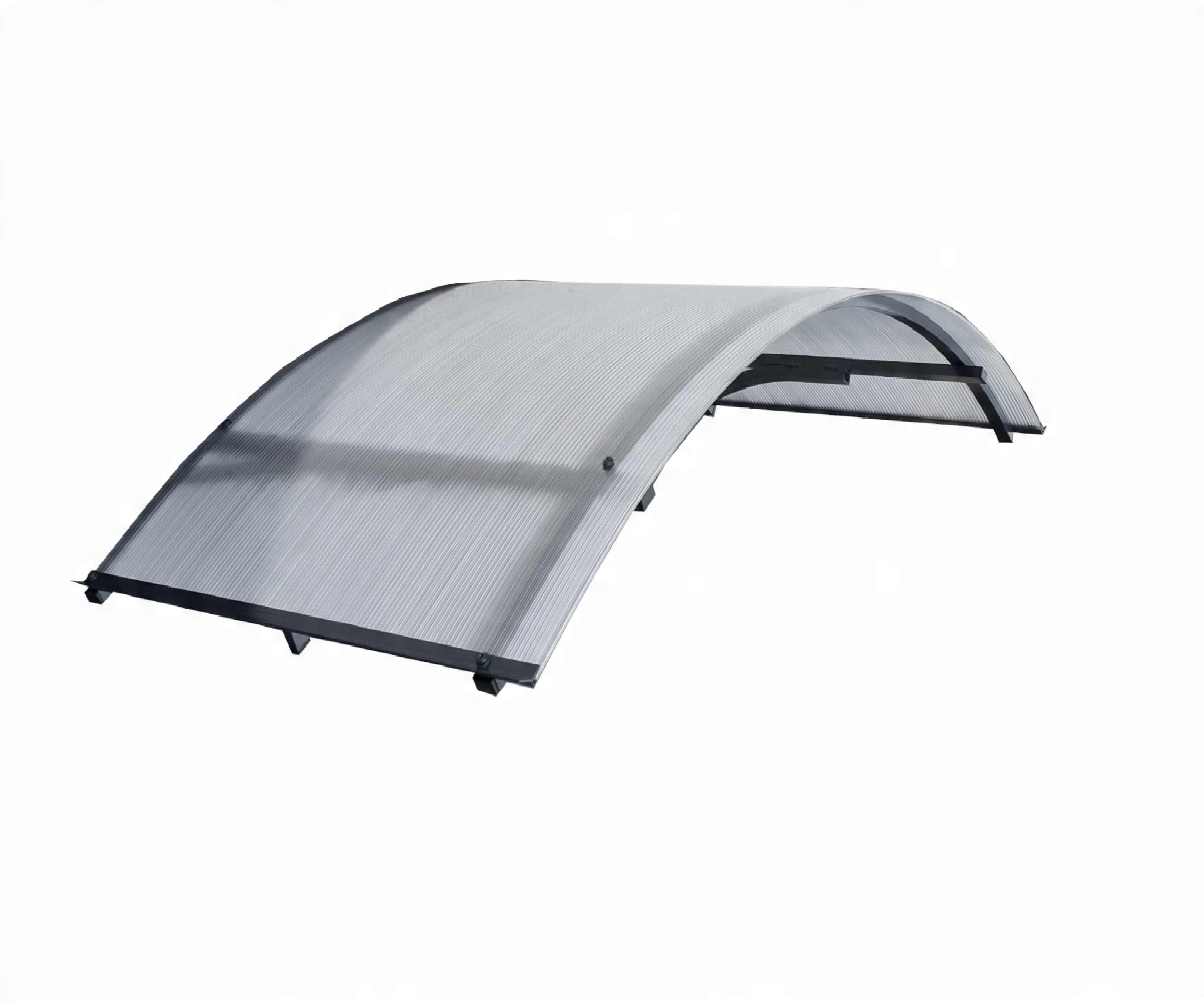 - Крыша в виде крыши с двумя боковыми стенками - конструкция из 4-х камерного поликарбоната, бесцветного и графитового алюминиевого каркаса с порошковым покрытием. Поликарбонат толщиной 4 мм устойчив к ударам и УФ-излучению, не обесцвечивается и не крошится. Алюминиевая рама делает конструкцию прочной и устойчивой.