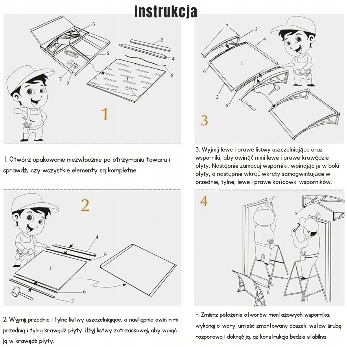 Благодаря точной инструкции на польском языке и простой конструкции этот навес не требует найма профессионального персонала для установка. Единственное, что вам нужно запомнить, это рекомендации, содержащиеся в инструкции, и навес будет установлен в течение часа-двух.