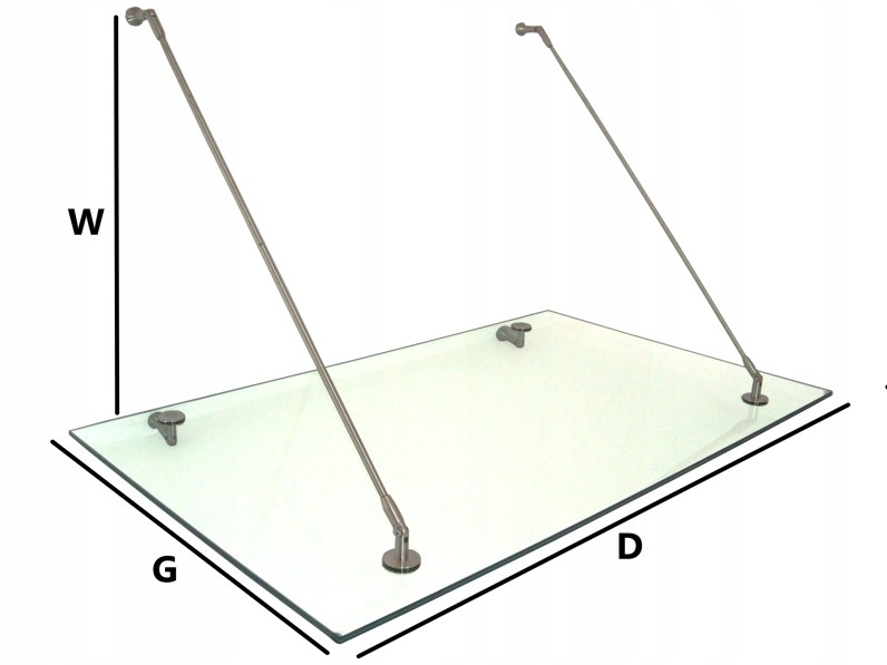 Стеклянный навес 150х90 см - стекло ВСГ-ЭСГ, элементы из нержавеющей стали