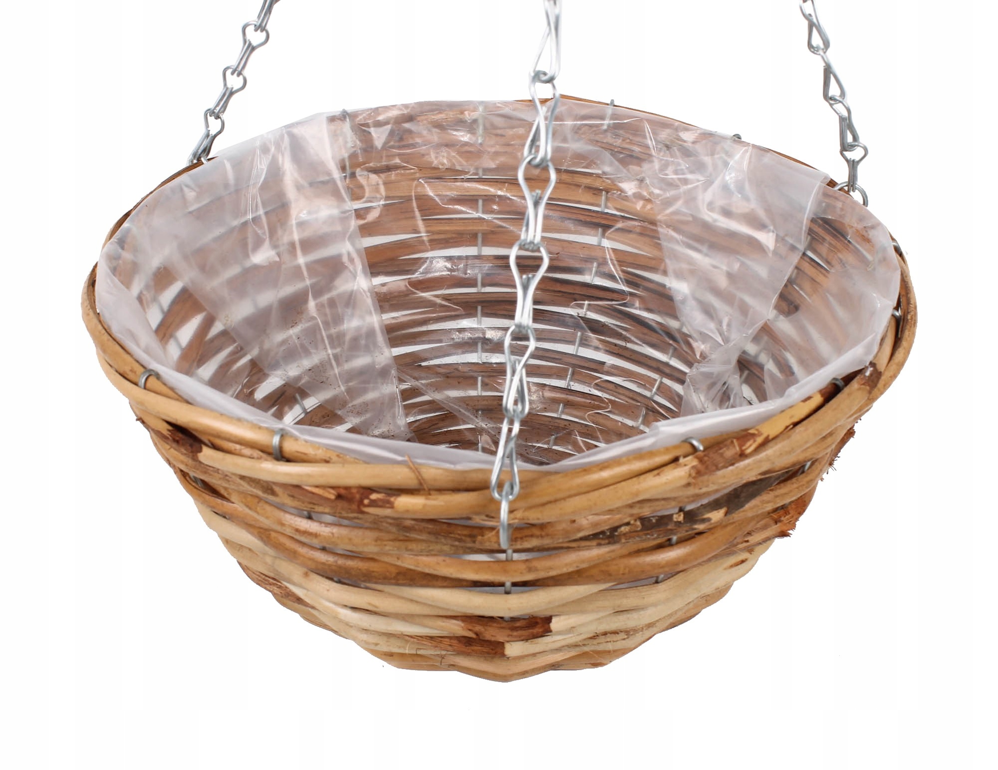 ПОДВЕСНАЯ ПЛЕТЕННАЯ КОРЗИНА ДЛЯ ЦВЕТОВ НАТУРАЛЬНОГО РОТАГА, Ø28x15/50 см