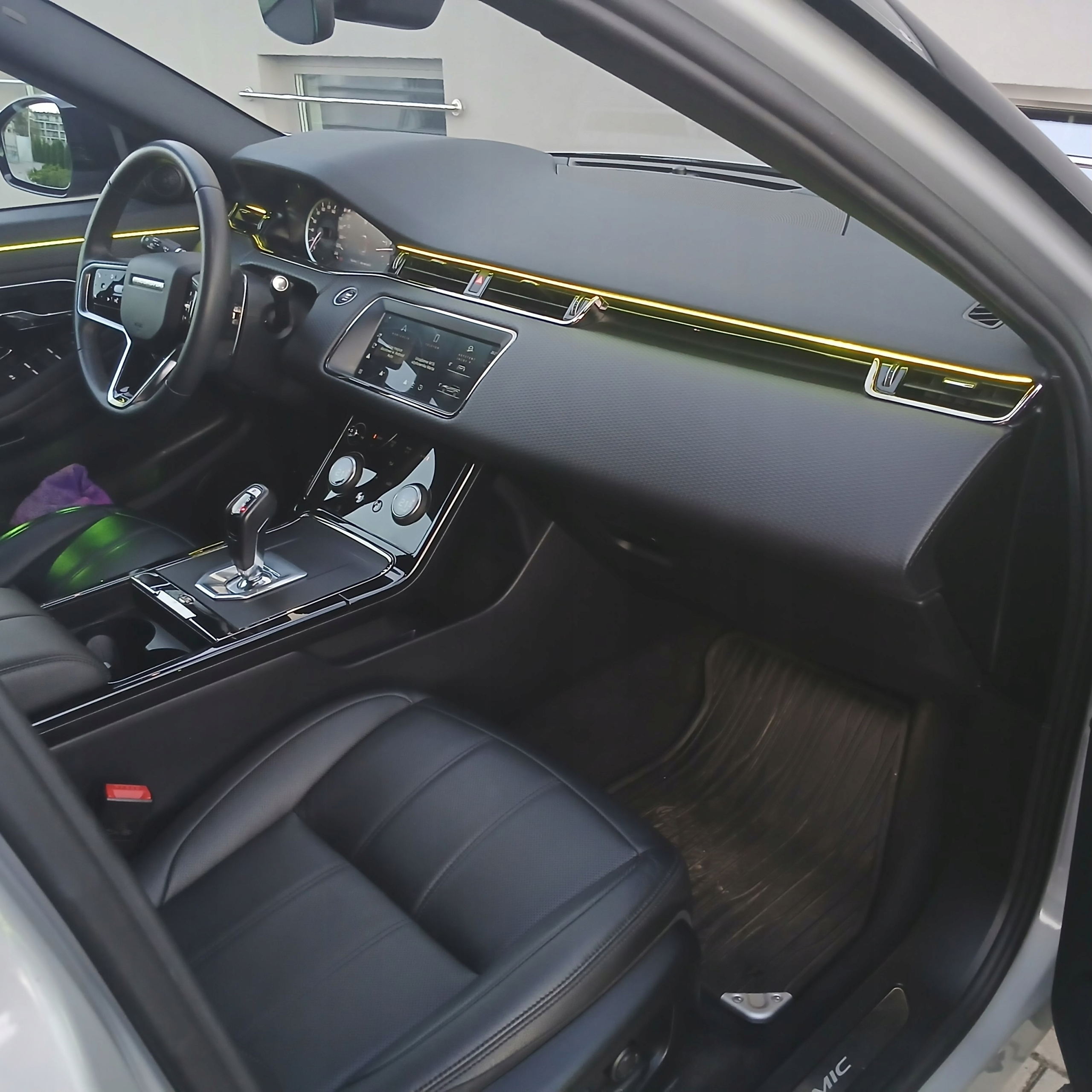 Атмосферное освещение салона Range Rover Evoque. Управляется из приложения Full color. В комплект входит центральная светодиодная лента торпедо, светодиодные ленты дверей, подсветка отсеков, дверей, подсветка ручек дверей, подсветка пространства под ногами. Бесплатный полный комплект для сборки. Пожалуйста, согласуйте удобную дату установки.
