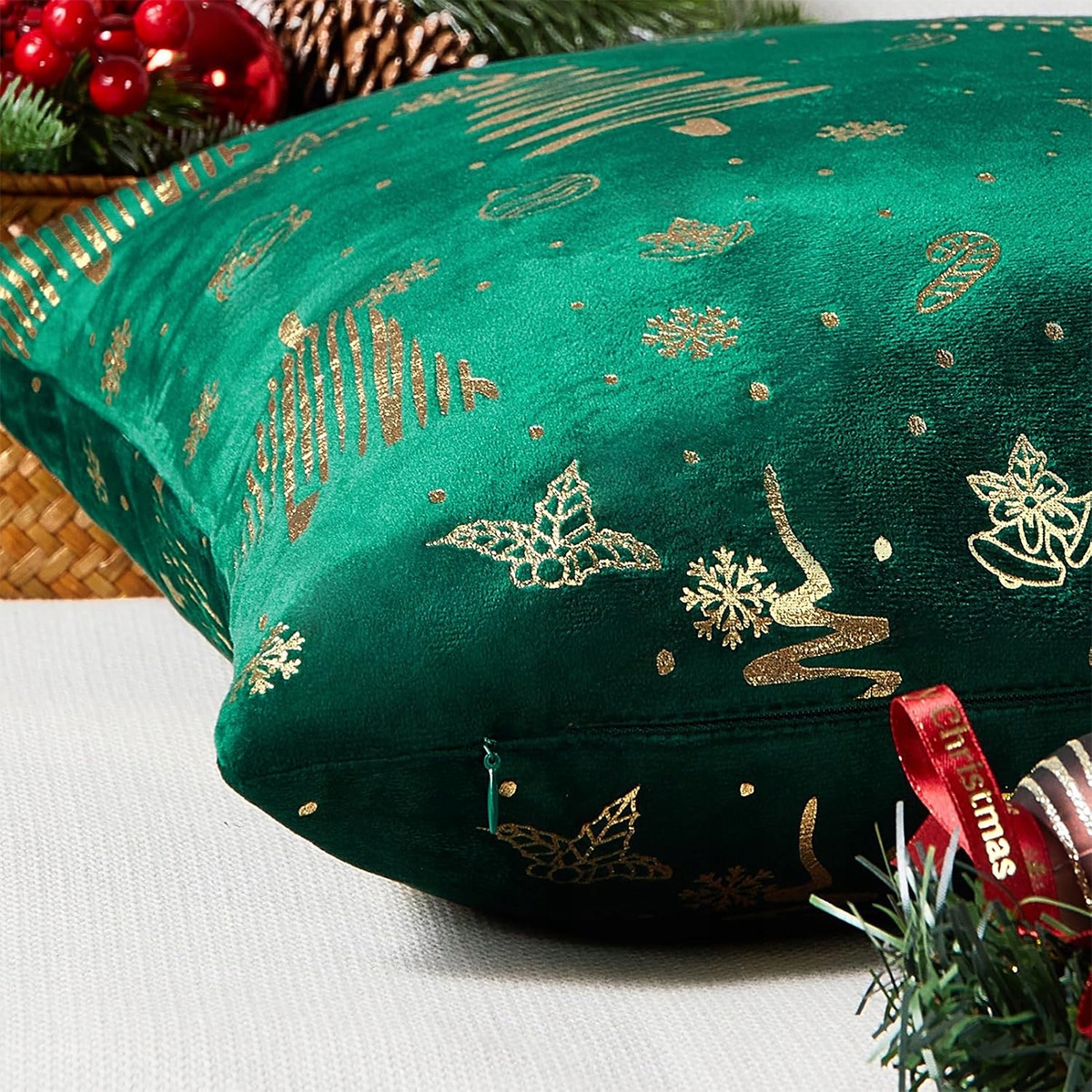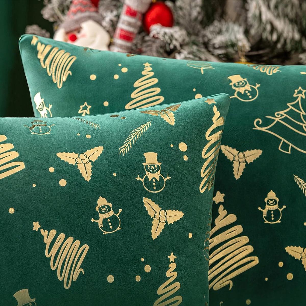 ✨✨✨Наволочка 40х40 см, новогодняя, зелено-золотая, бархат, наволочка, диванная подушка, диванная подушка, декоративный набор из 2-х подушек, новогоднее украшение для гостиной, дивана, спальни, столовой, стула, детской комнаты (без вставки и наполнения)✨✨✨