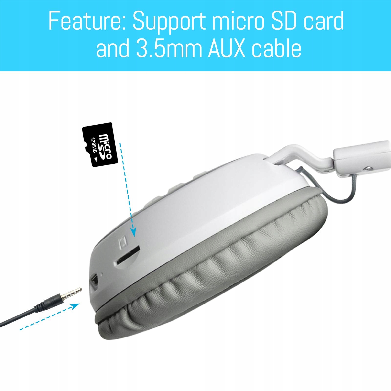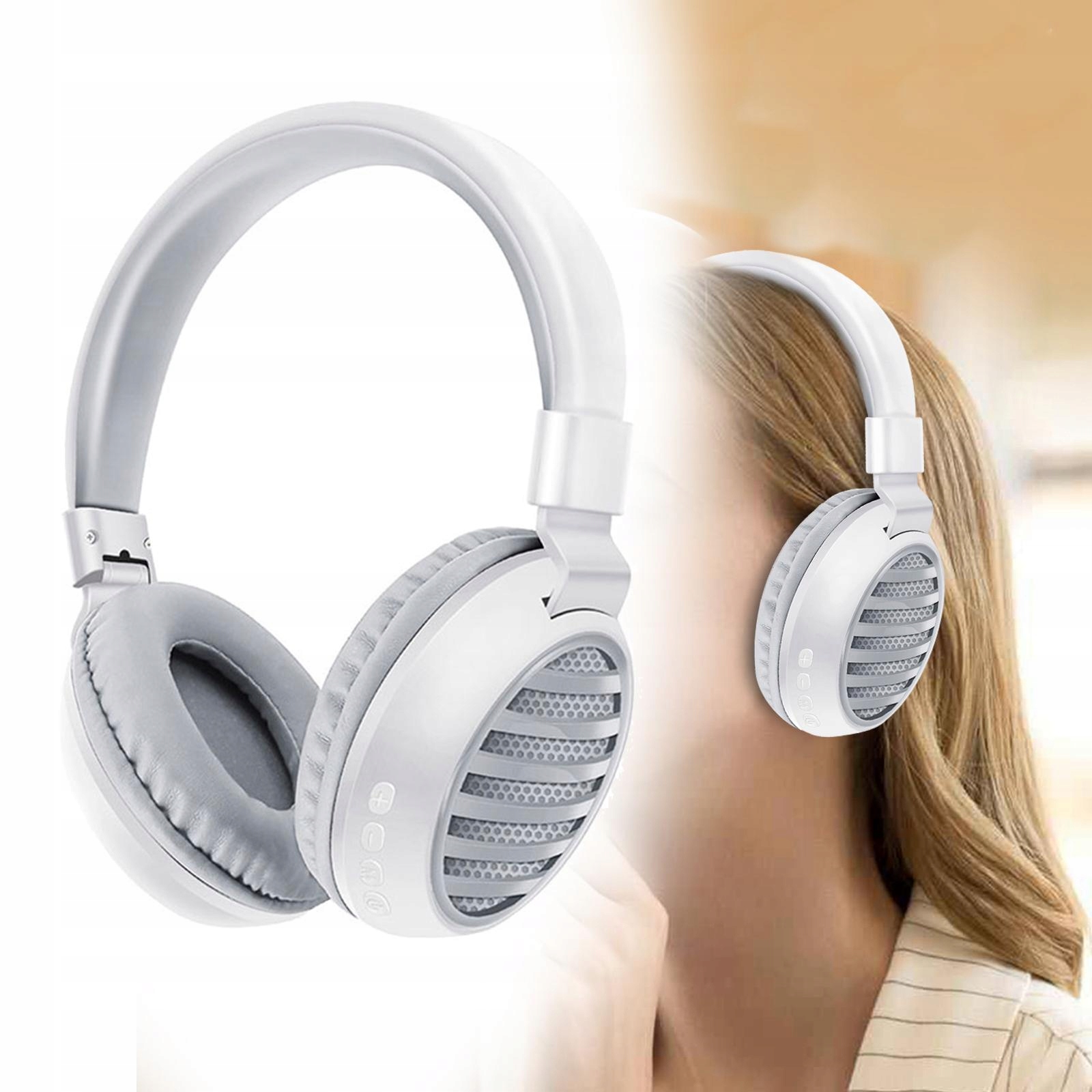 Наушники Bluetooth, сложенные, с микрофоном, с входом Aux, белый