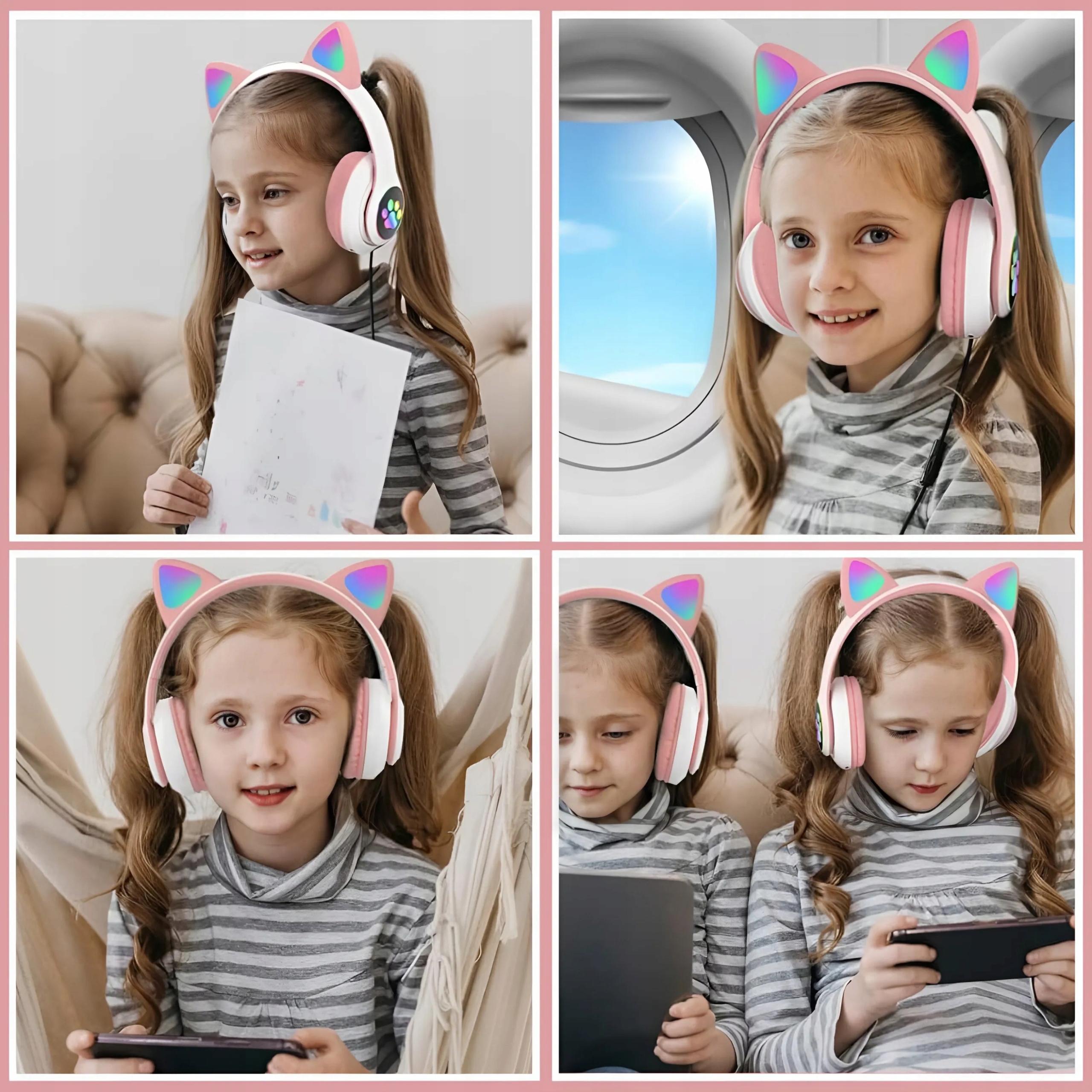 Наушники Bluetooth для детей светодиодные розовые уши RGB для подарка