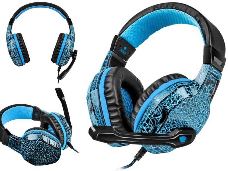 наушники для геймеров, с подсветкой, черно-синие, с регулировкой громкости на кабеле,