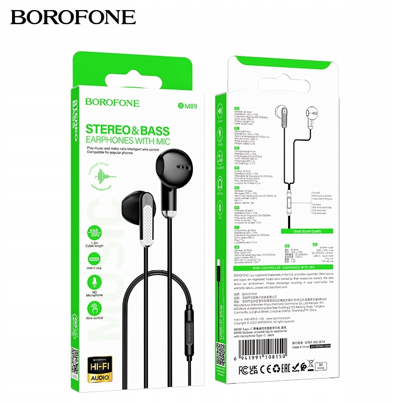 BOROFONE BM89 Surpass — это кабельные/проводные аудионаушники-вкладыши с разъемом USB Type-C/Type C/Type C/USB-C, оснащенные микрофоном для телефонных звонков и кнопками для управления музыкой или звонками. Наушники имеют встроенный аналого-цифровой ЦАП преобразователь, отвечающий за качество воспроизводимой музыки и совместимость с вашим мобильным устройством.