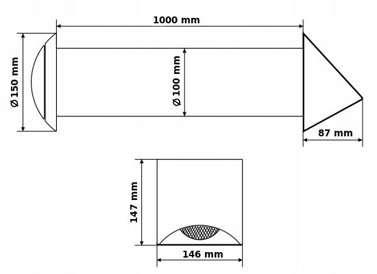 Nawietrzak nawiewnik wentylacyjny CZNP100 kanał 1m