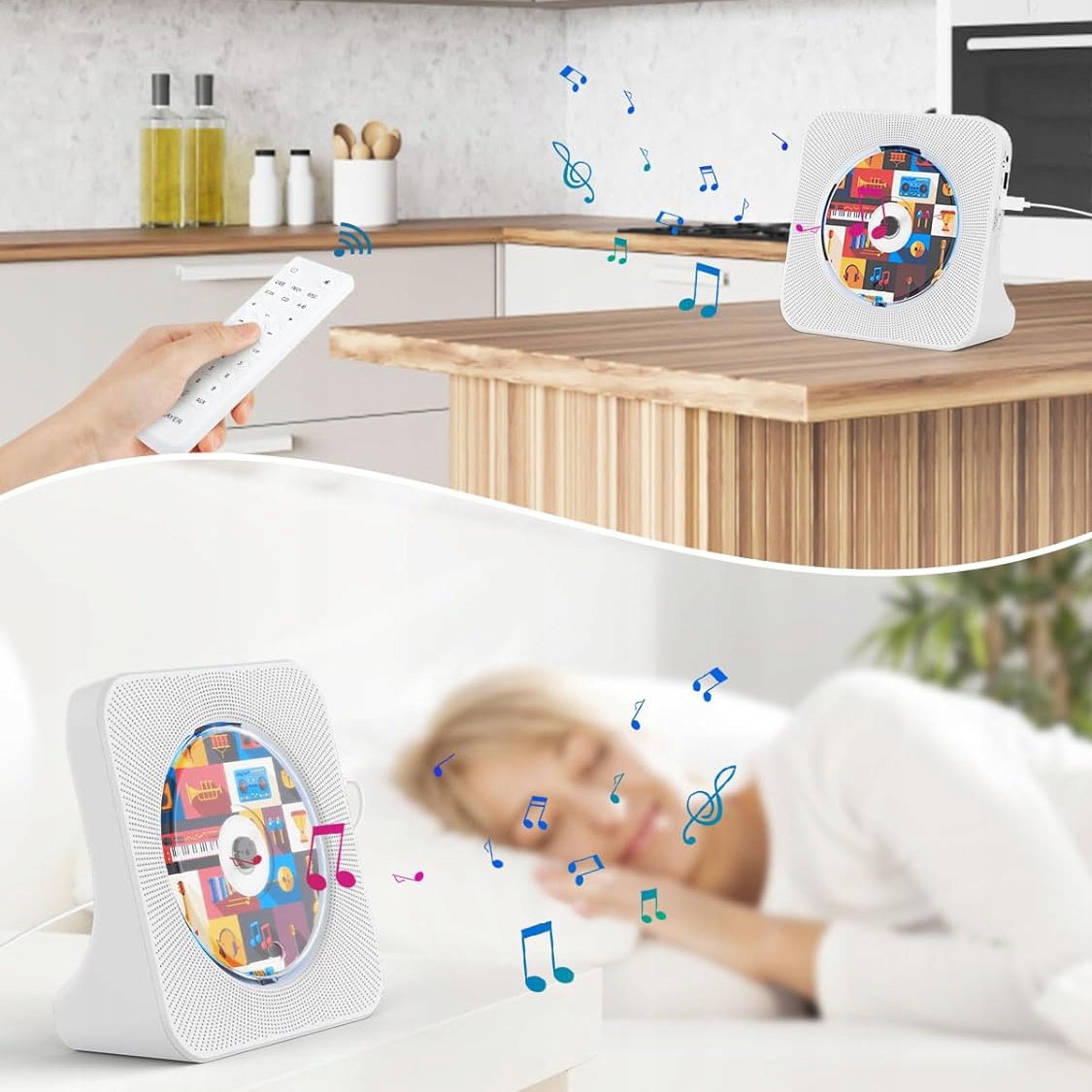 В верхней части проигрывателя компакт-дисков Bluetooth имеется светодиодный дисплей, на котором можно выбрать 5 режимов (CD/Bluetooth/FM/AUX/USB) на светодиодном дисплее. Нажмите кнопку, чтобы переключиться в режим FM, и вы сможете слушать погоду, новости, дорожное движение и музыку со всех каналов в удобное для вас время. Функция повтора гарантирует повтор треков/разделов в соответствии с вашими настройками.