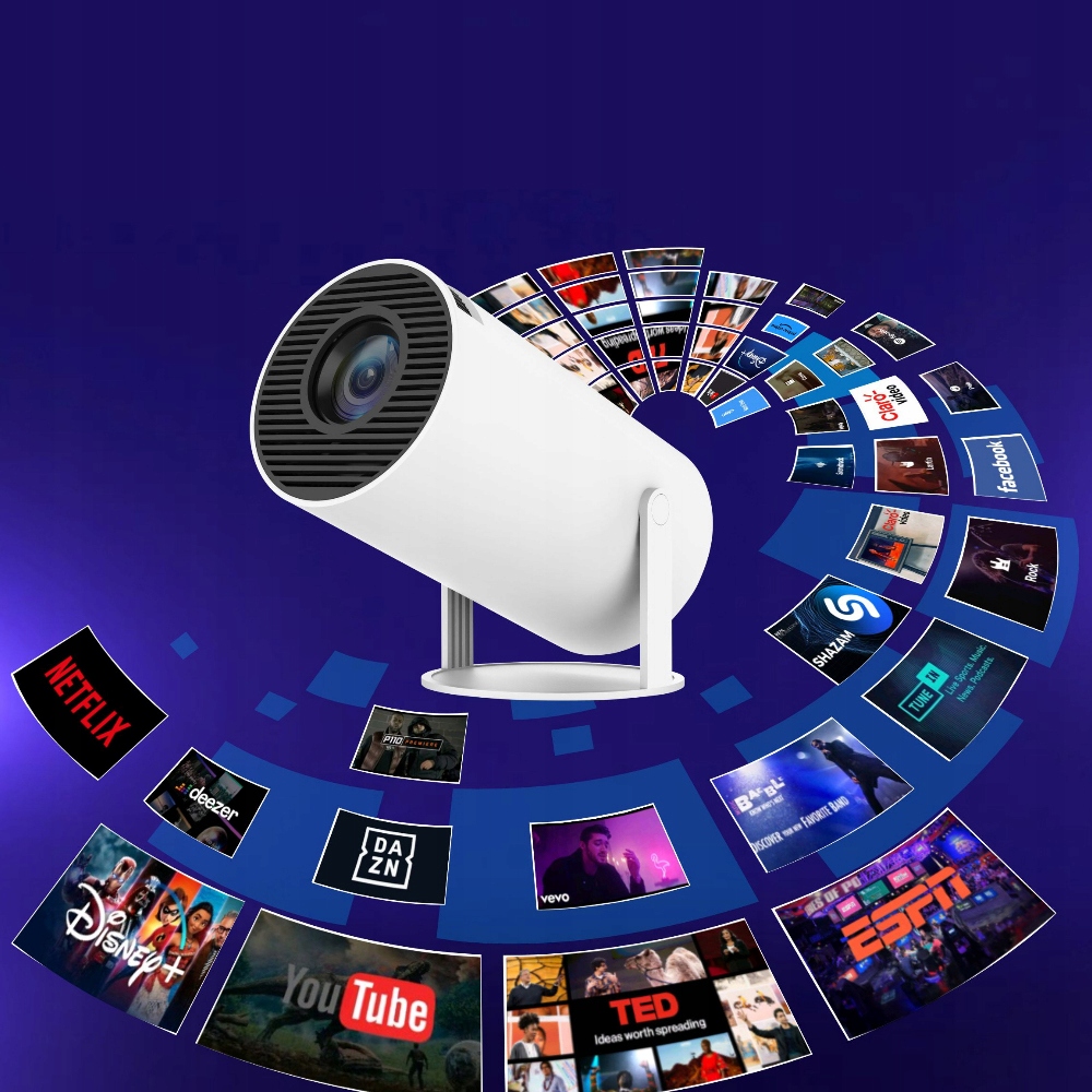 💎💎 Умный проектор: Поддержка подключения мобильных телефонов Android или Apple для проецирования экрана. Основание проектора имеет поворотное основание на 220°, которое можно использовать в качестве проекционного экрана от пола до потолка. Большой 130-дюймовый экран обеспечивает более четкое изображение.