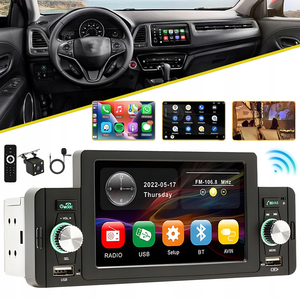 5-дюймовый сенсорный дисплей Автомобильный радиоприемник поддерживает FM-радио с 18 предустановленными станциями, вы можете слушать дорожное движение в режиме реального времени, новости, прогнозы погоды и т. д. Оснащен Bluetooth 4.2, поддерживает входящие и обработанные вызовы, синхронизированную адресную книгу, воспроизведение музыки на мобильных устройствах и голосовые функции.< /п>